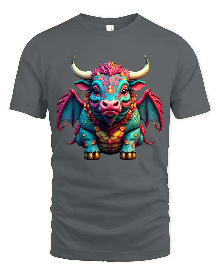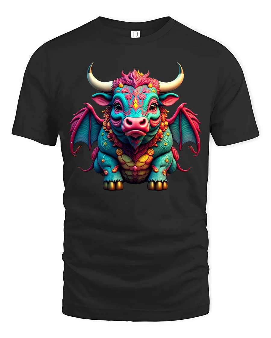 Cute Fantasy Dragon Cow Hybrid Cartoon Art T Shirt blends imagination and charm in a vibrant magical design.