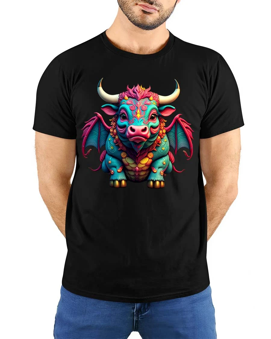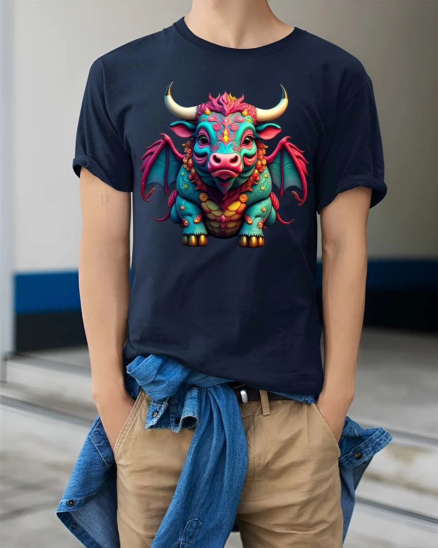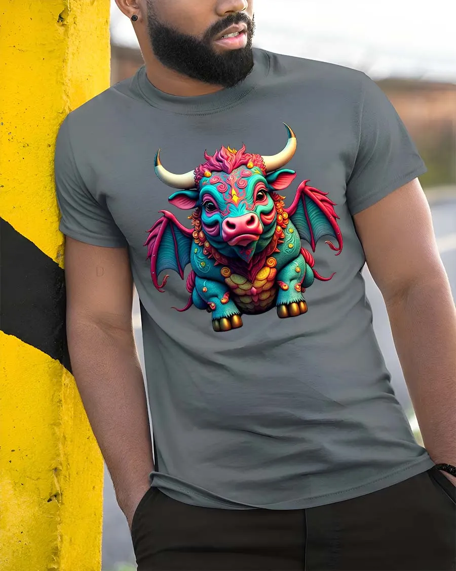 Home Youth Cute Fantasy Dragon Cow Hybrid Cartoon Art T Shirt