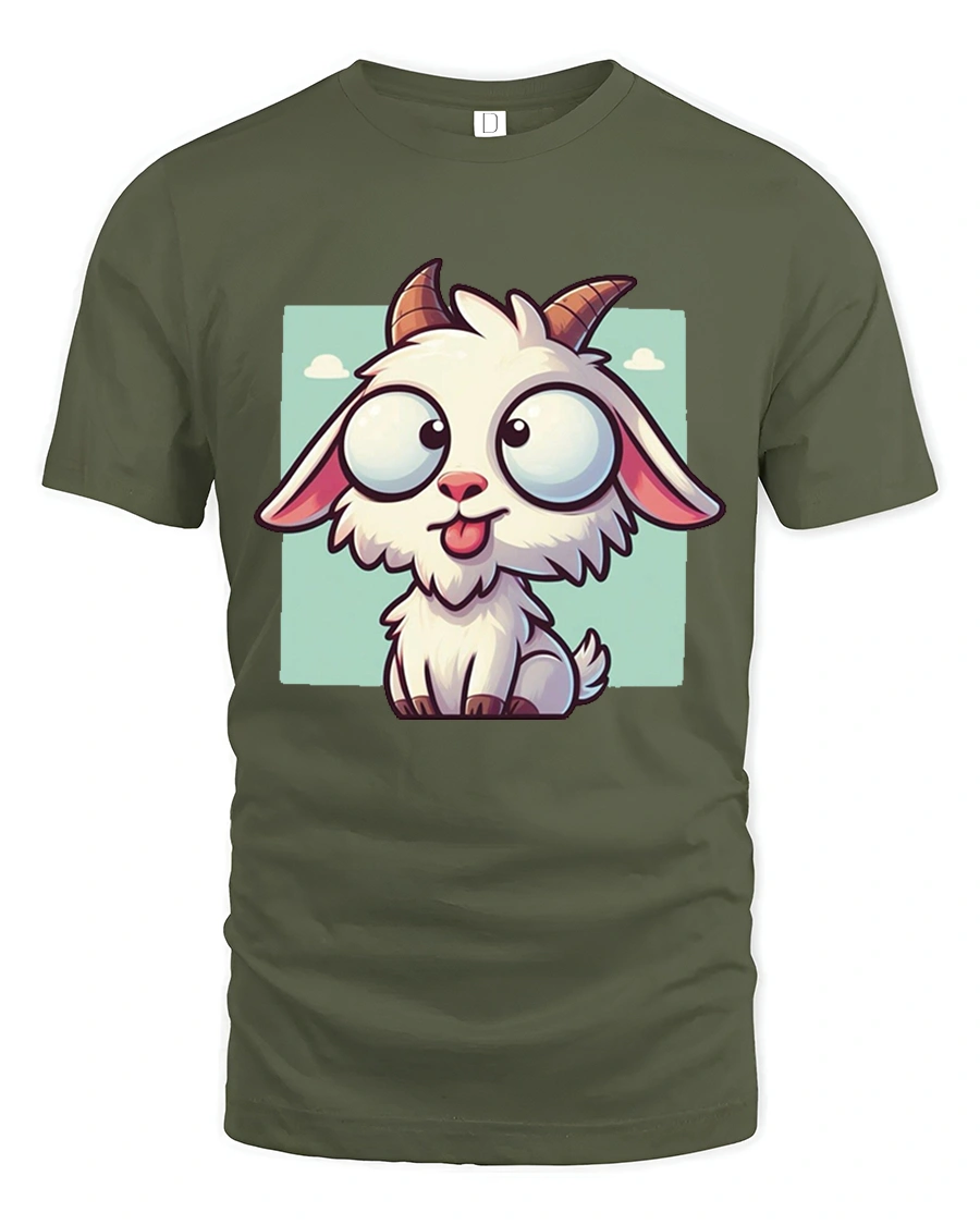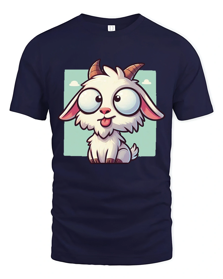 The Cute Funny Goat Cartoon Big Eyes Kawaii Animal Graphic T Shirt is perfect for anyone who loves cute animals playful art and cheerful fashion.