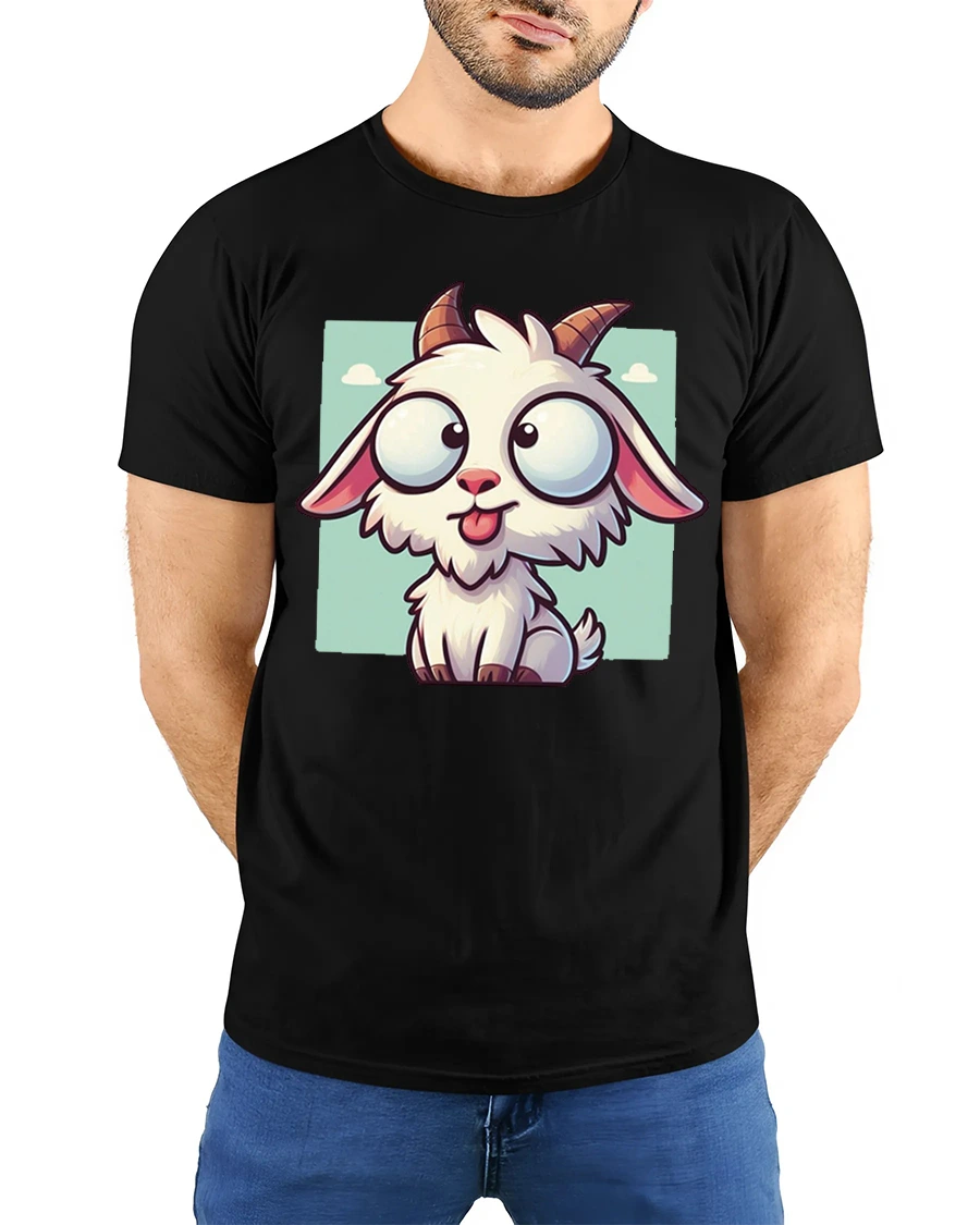 The Cute Funny Goat Cartoon Big Eyes Kawaii Animal Graphic T Shirt is made from soft breathable fabric that feels comfortable throughout the day.