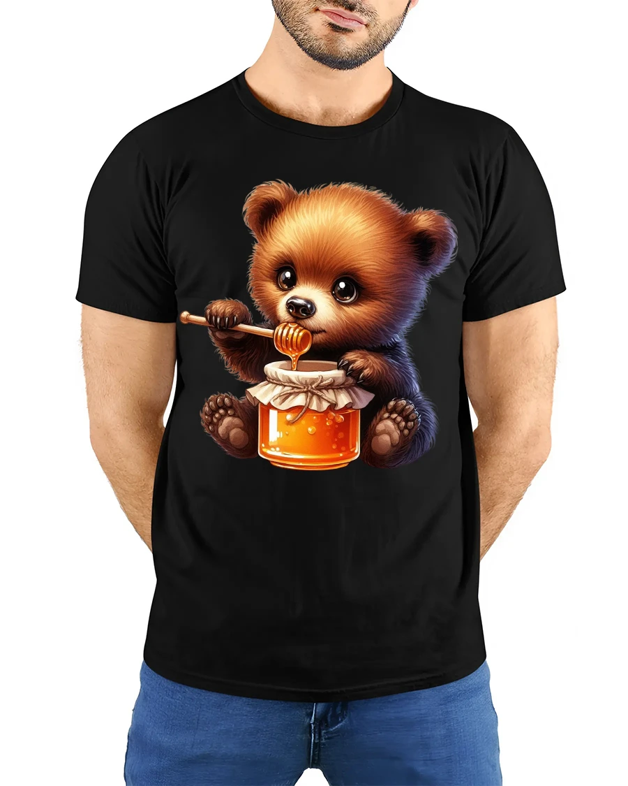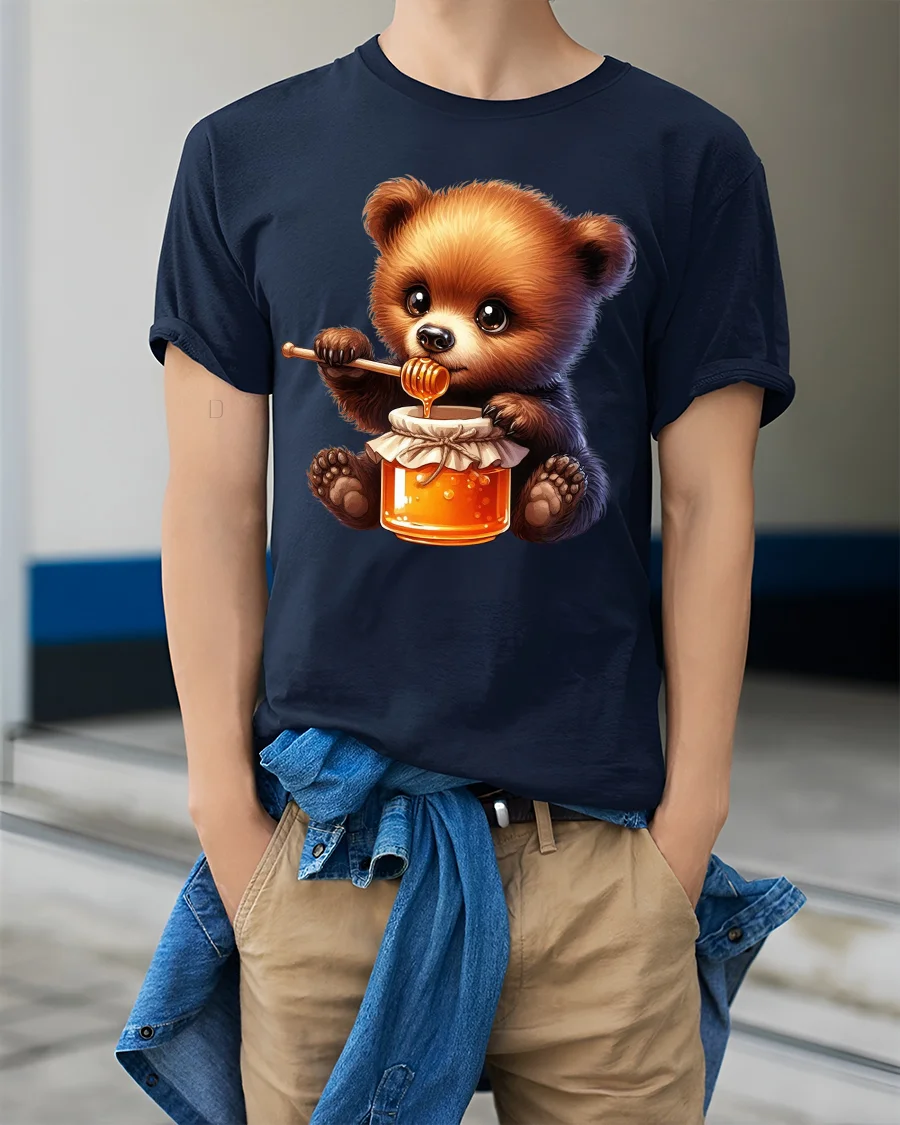Featuring a fluffy bear enjoying a jar of golden honey, this graphic tee captures a cozy and heartwarming moment that instantly makes people smile.