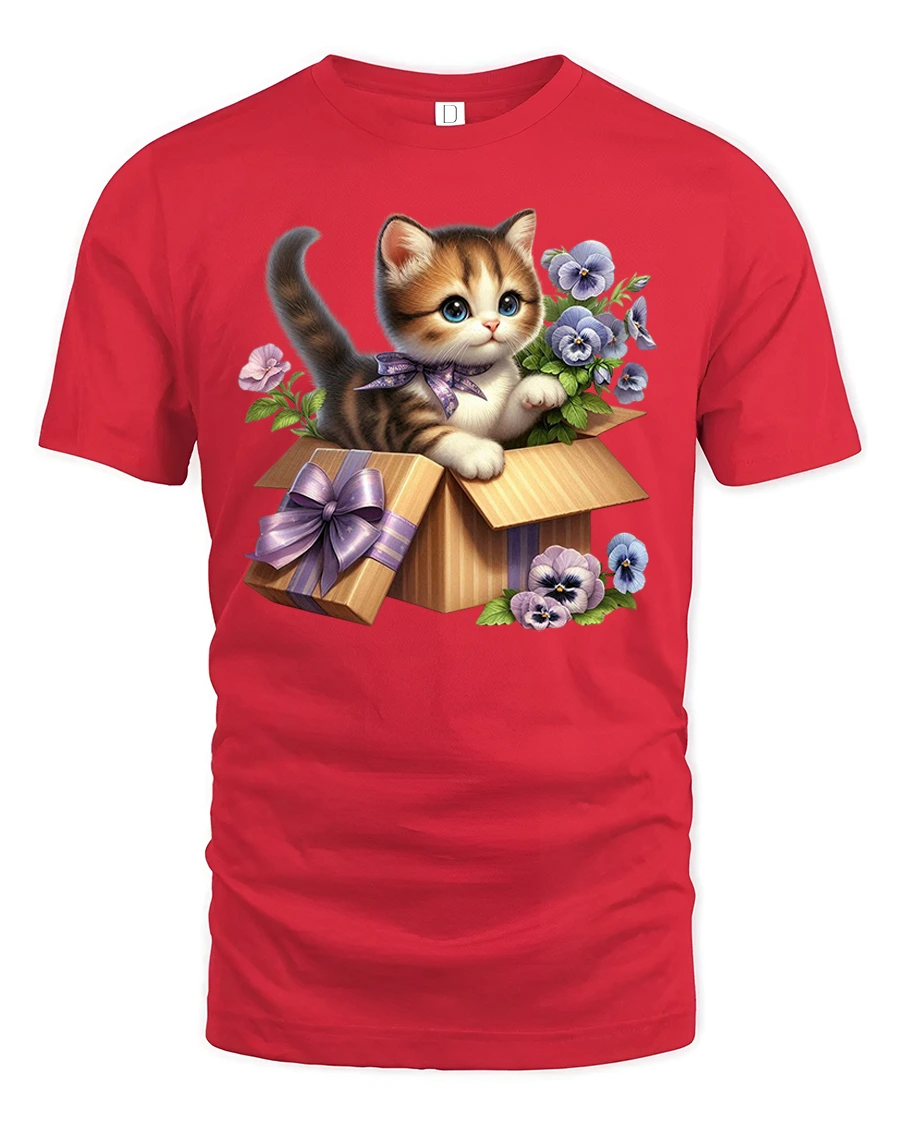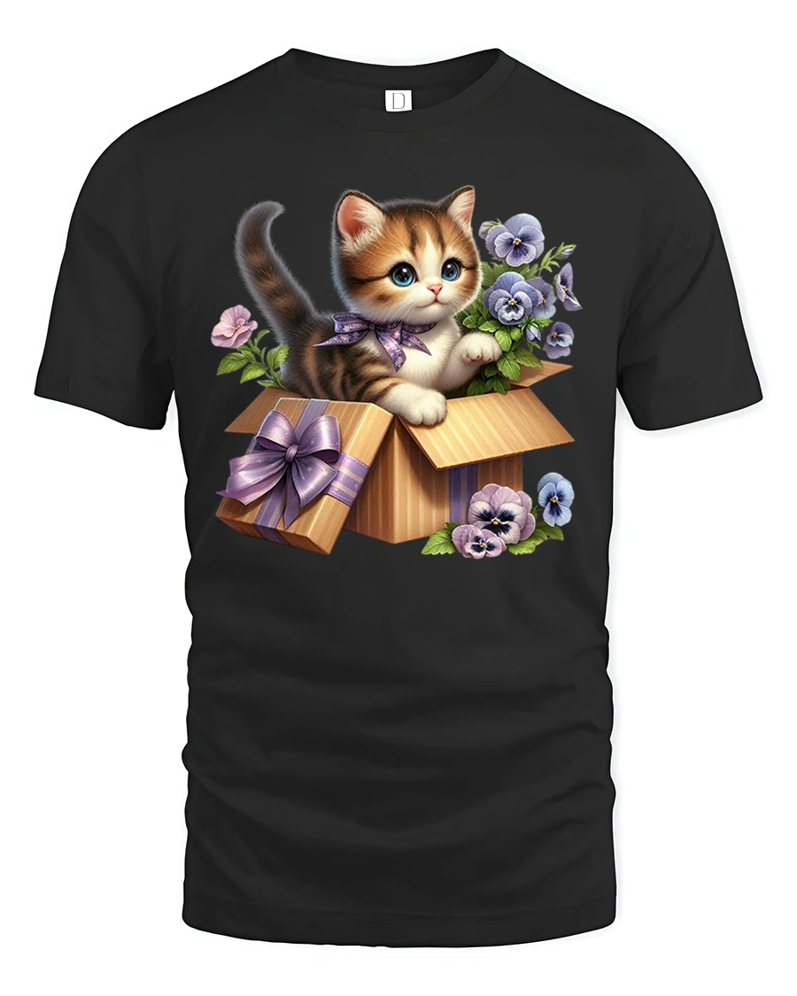 Show off your love for adorable pets with the Cute Kitten in Gift Box Floral Art Kawaii T-Shirt.