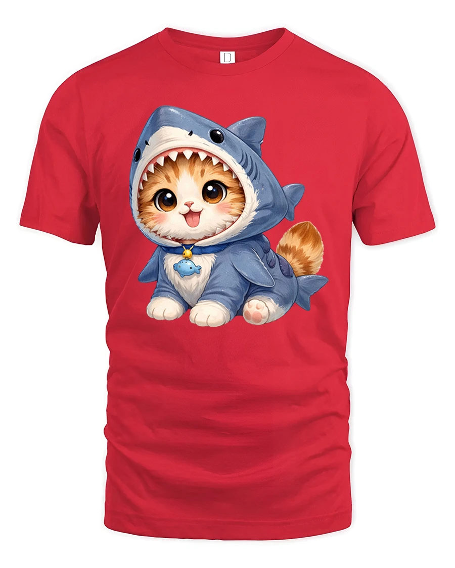 The Cute Kitten Wearing Shark Costume Adorable Cartoon Graphic T Shirt Tee combines humor and sweetness in a fun illustrated design that instantly makes people smile.