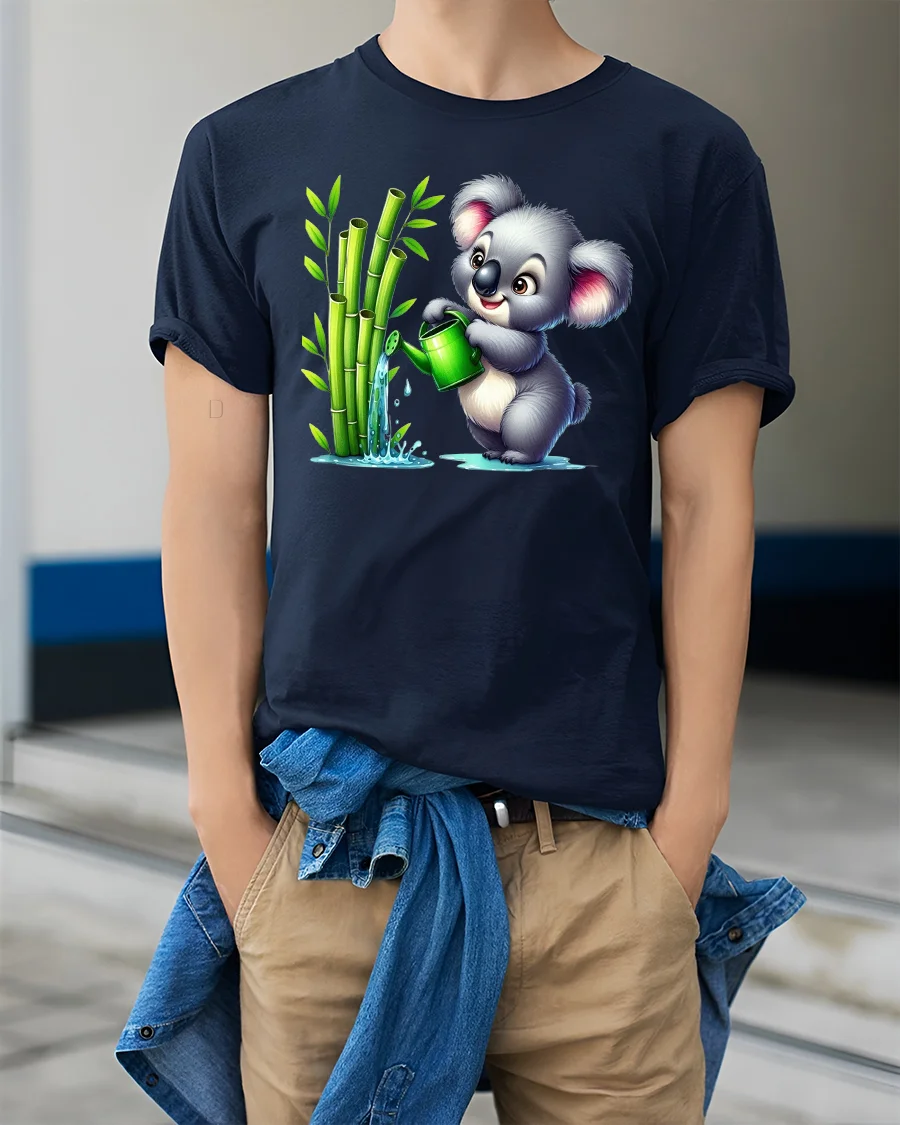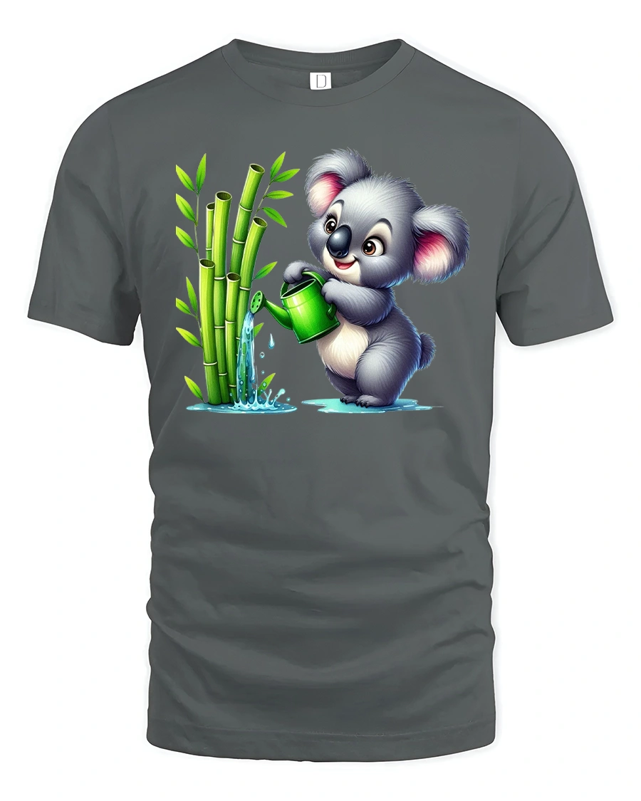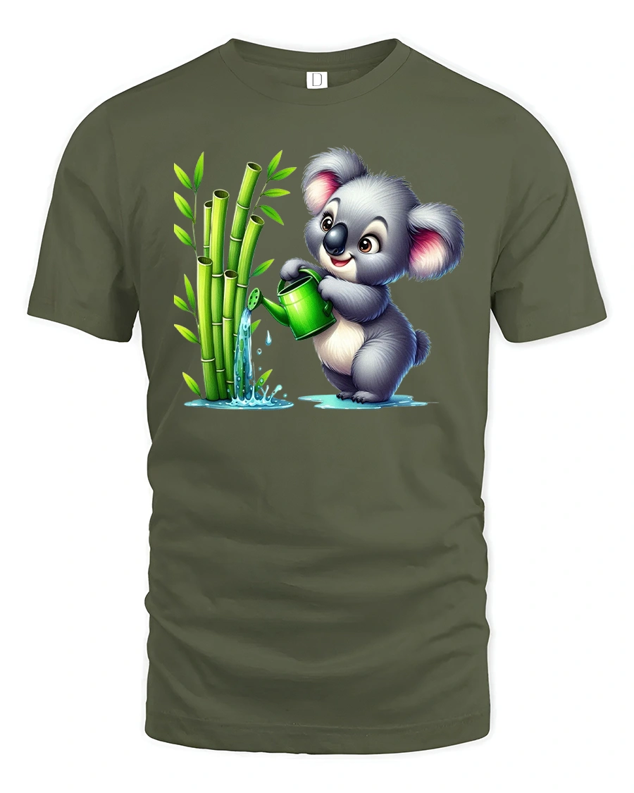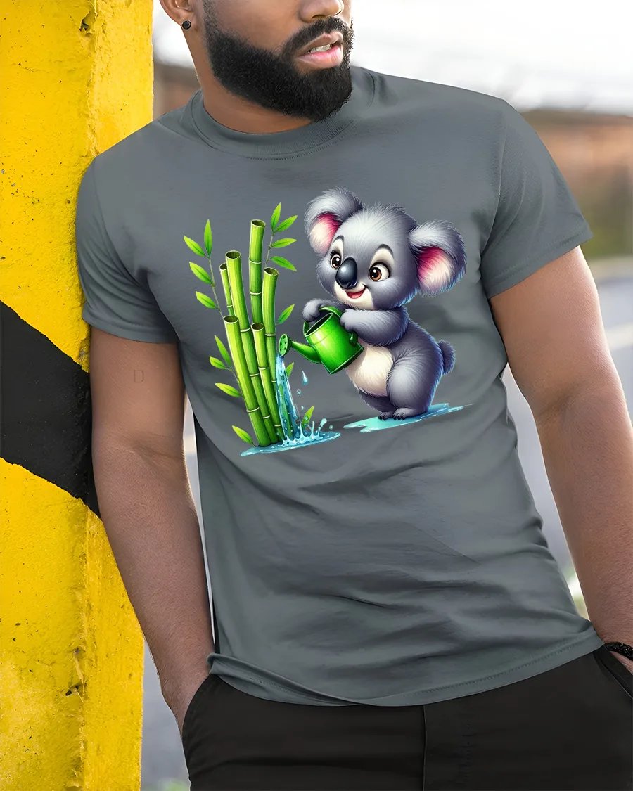 Cute Koala Watering Bamboo T-Shirt for Nature Lovers combines sweetness, humor, and eco-friendly charm in one delightful design.