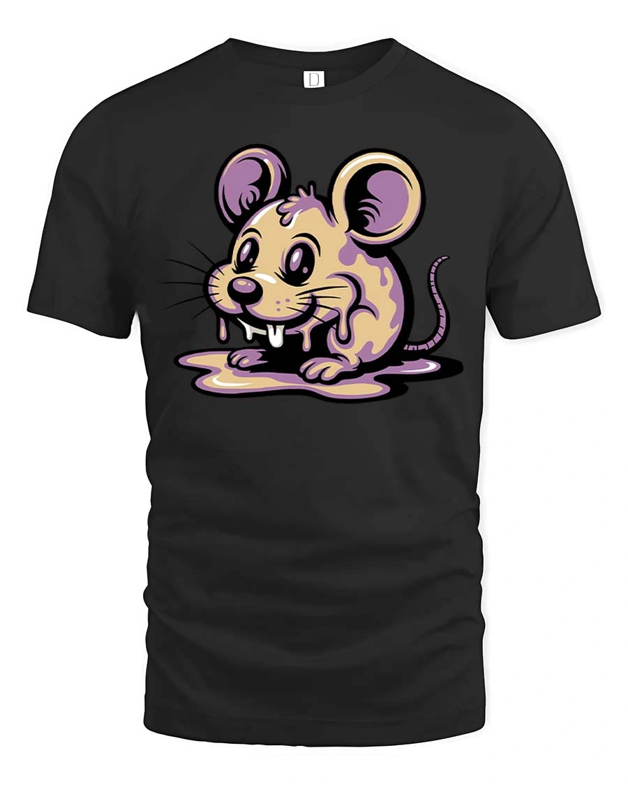 Cute Melting Mouse Graphic T Shirt Kawaii Drip Art Tee features an adorable cartoon mouse with a playful dripping design that adds a fun and quirky touch.