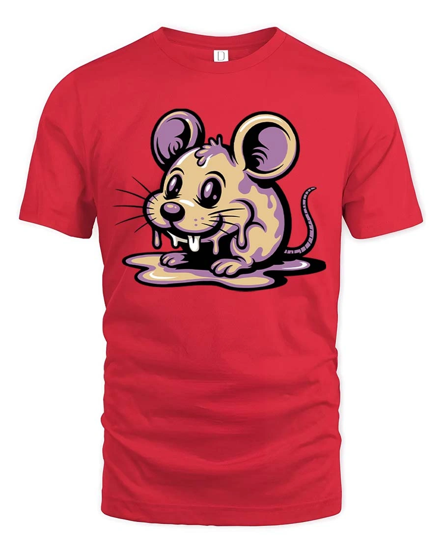 Cute Melting Mouse Graphic T Shirt Kawaii Drip Art Tee - red t-shirt on white background
