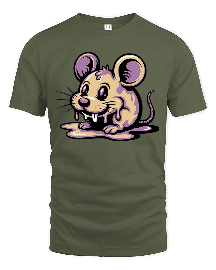 Cute Melting Mouse Graphic T Shirt Kawaii Drip Art Tee - military green t-shirt on white background
