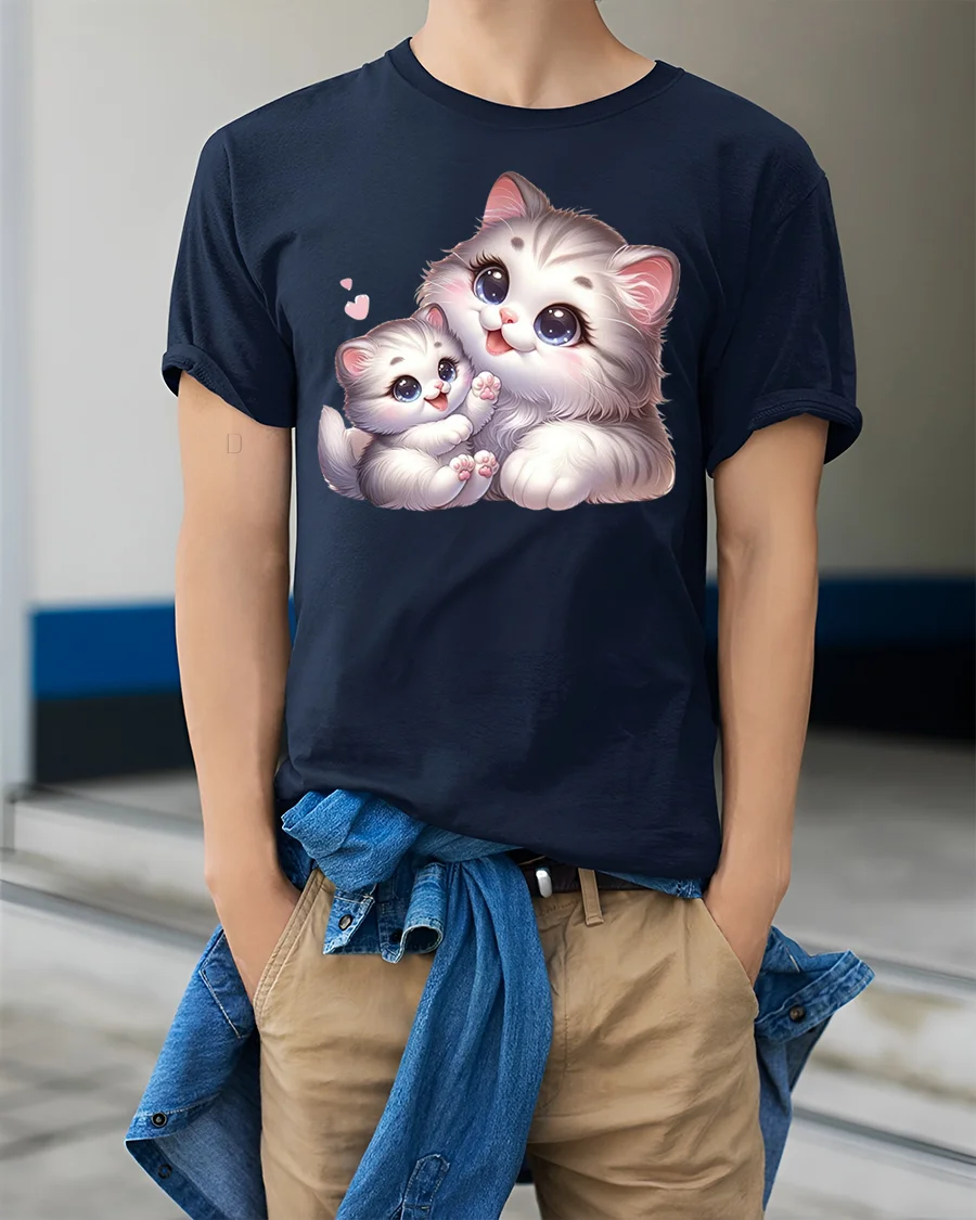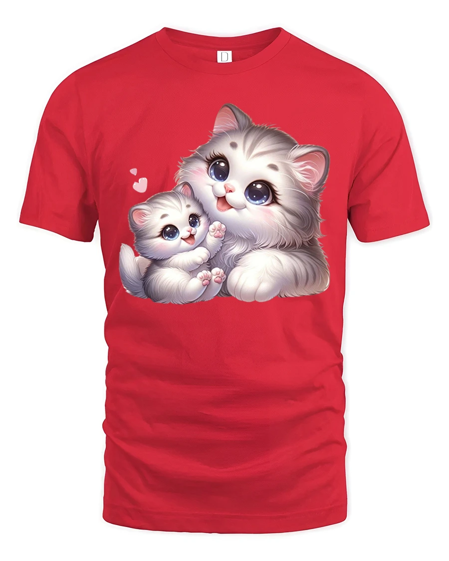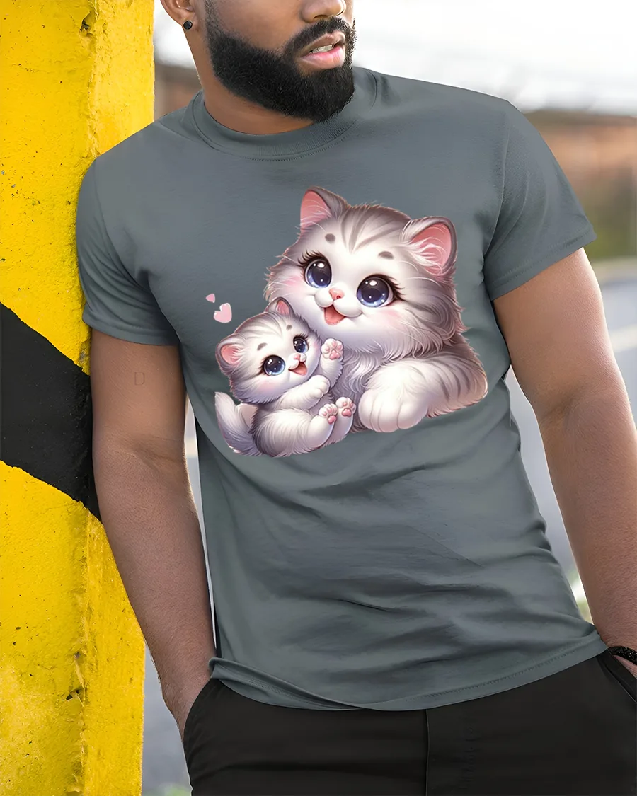 Celebrate love, warmth, and the joy of feline companionship with the Cute Mom and Baby Cat Hugging Love Art Graphic T-Shirt.
