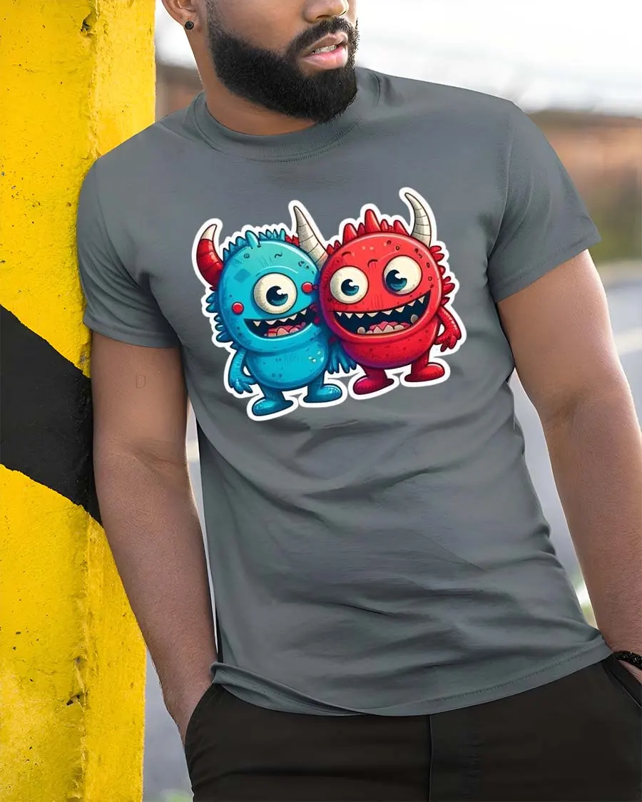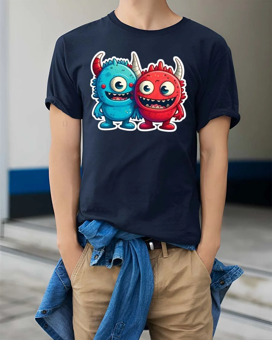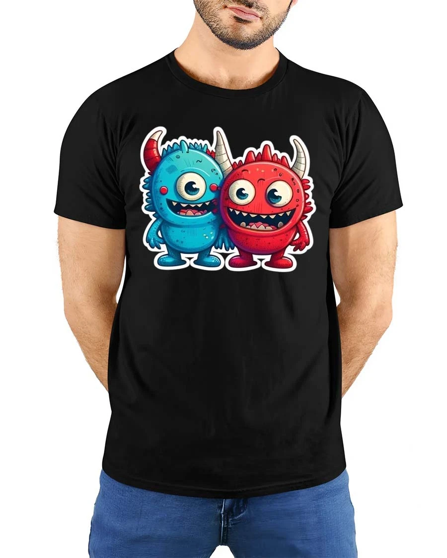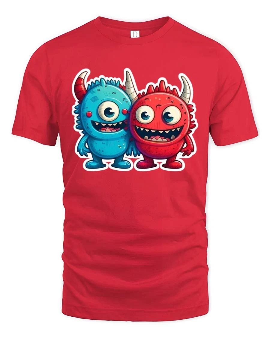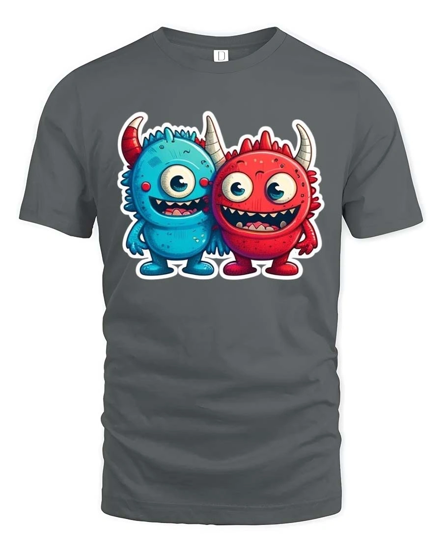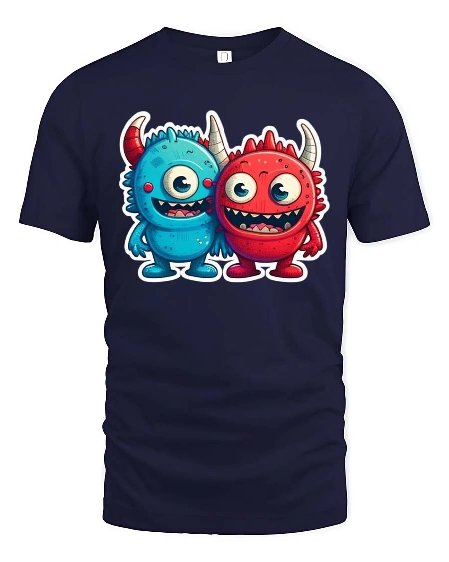 Cute Monster Duo T Shirt Funny Cartoon Best Friends Art features an adorable pair of colorful monster characters with a playful and friendly vibe.