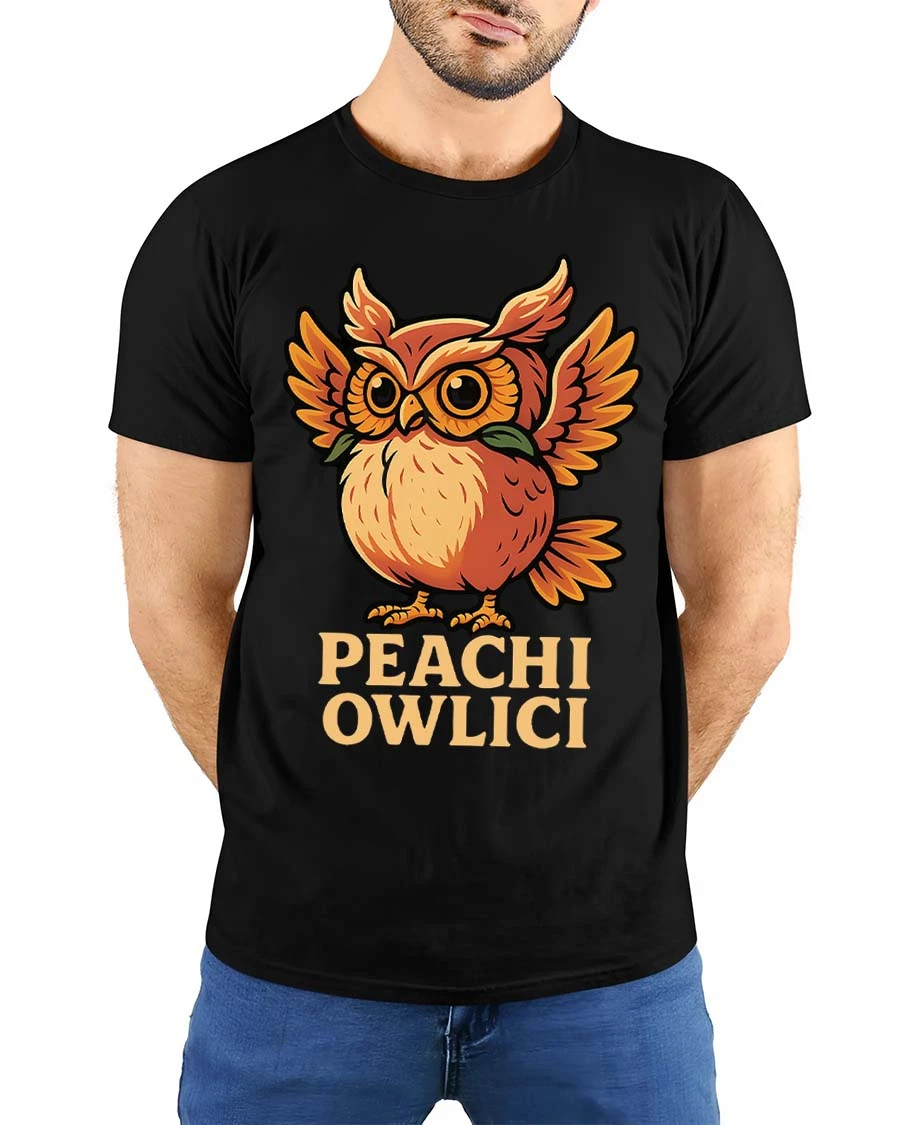 Cute Peach Owl T Shirt Funny Owlici Cartoon Graphic Tee brings charm and playful personality into one adorable design.