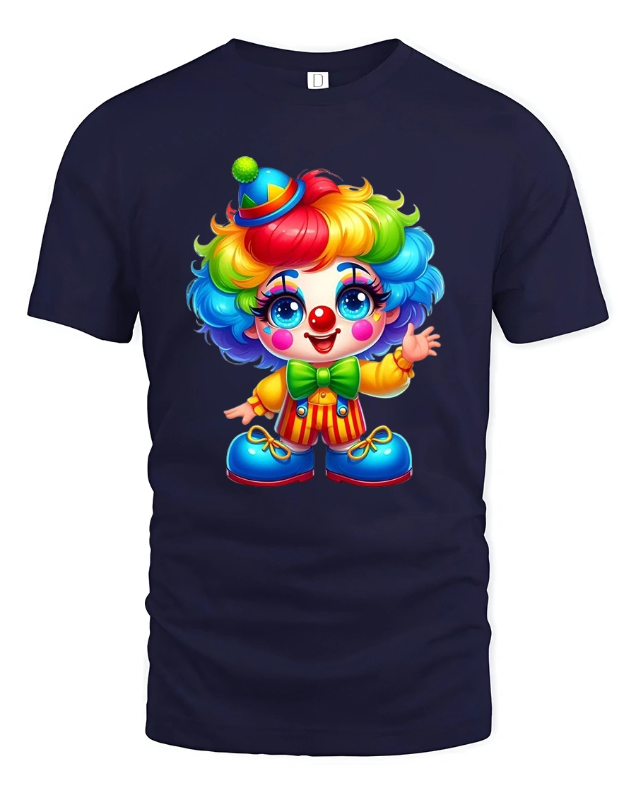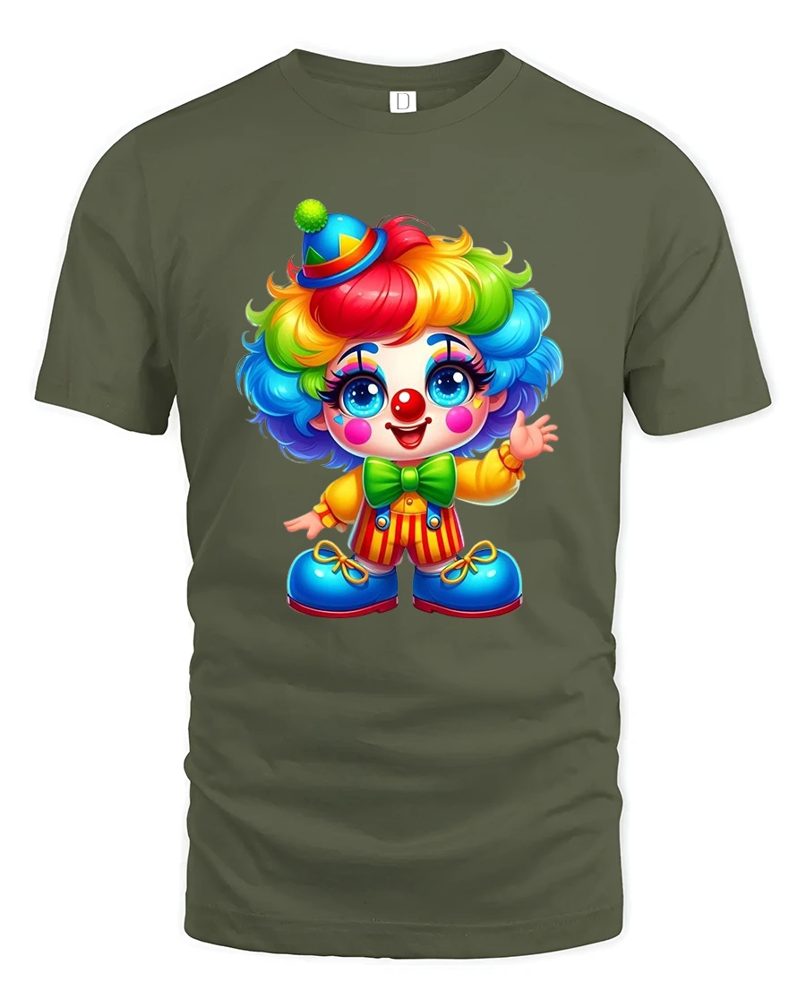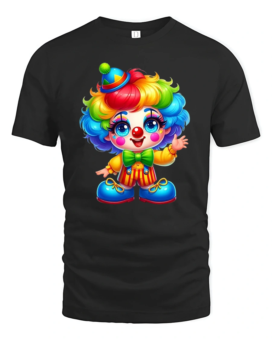 Cute Rainbow Clown T Shirt Adorable Cartoon Circus Art adds personality and playful vibes to any wardrobe. This eye catching design transforms simple fashion into a bright expression of happiness and colorful self confidence.