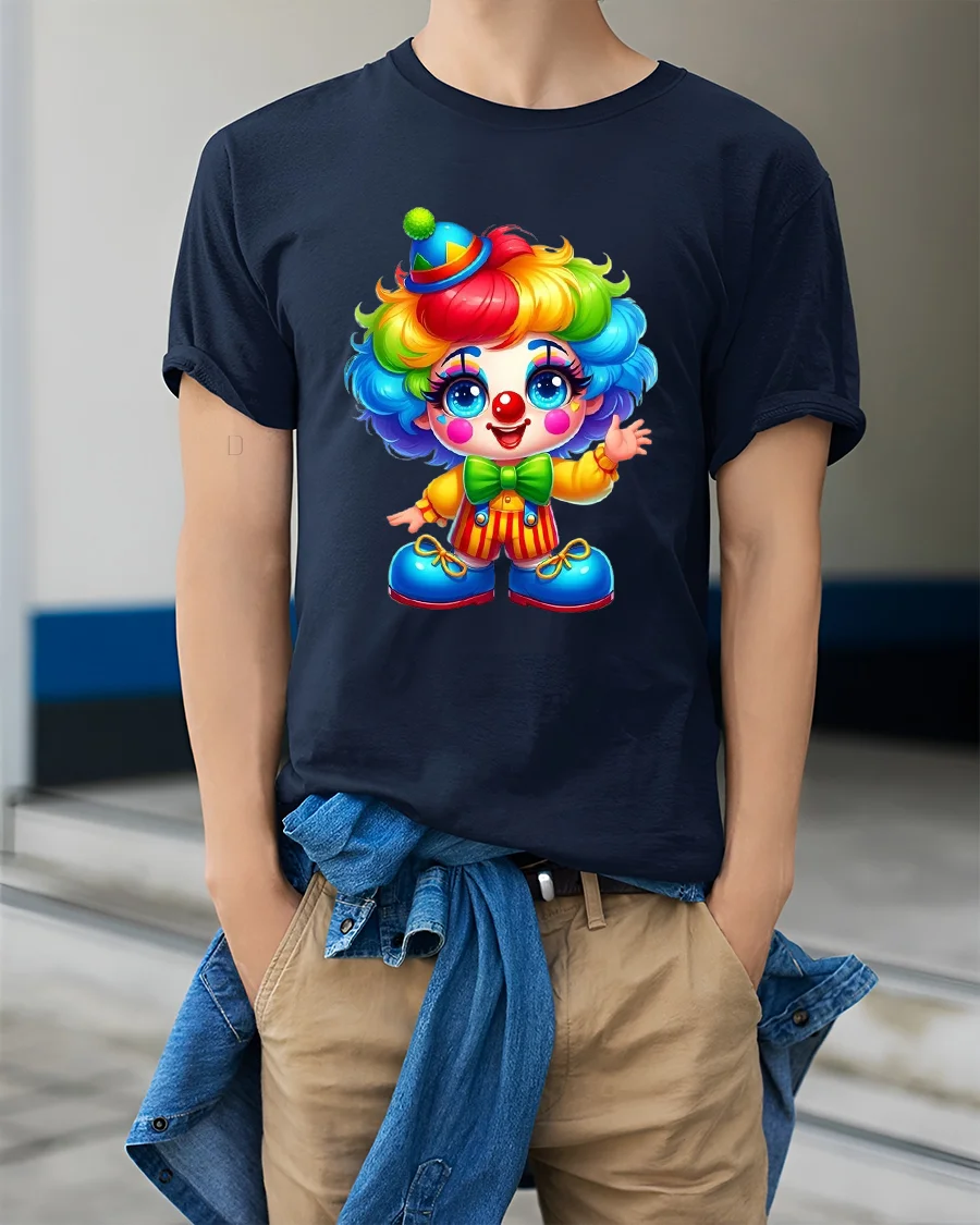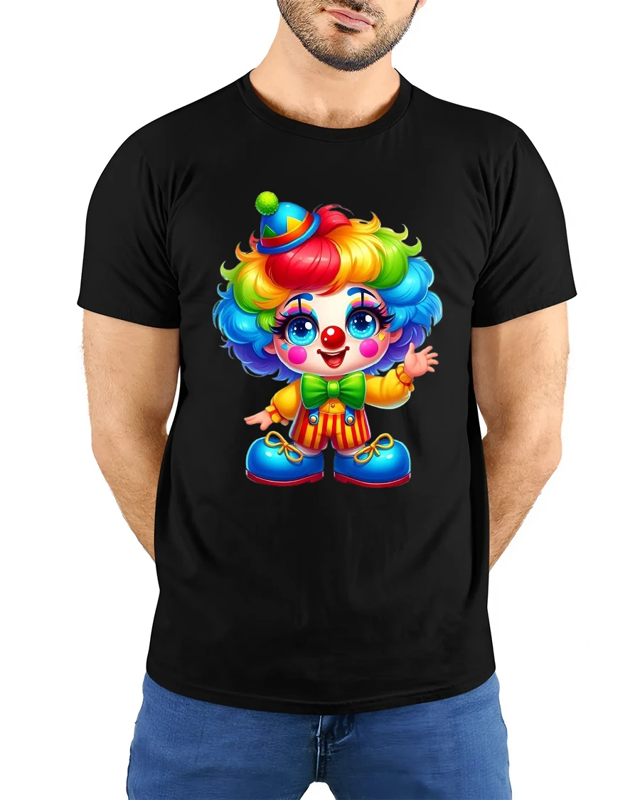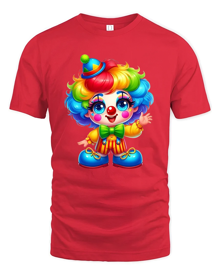 Cute Rainbow Clown T Shirt Adorable Cartoon Circus Art brings joyful energy and playful charm into your everyday style. This delightful graphic tee features a smiling clown with vibrant rainbow hair, bright blue eyes, and colorful circus inspired details that instantly catch attention. The cheerful expression and bold design create a fun statement filled with positivity and creativity.