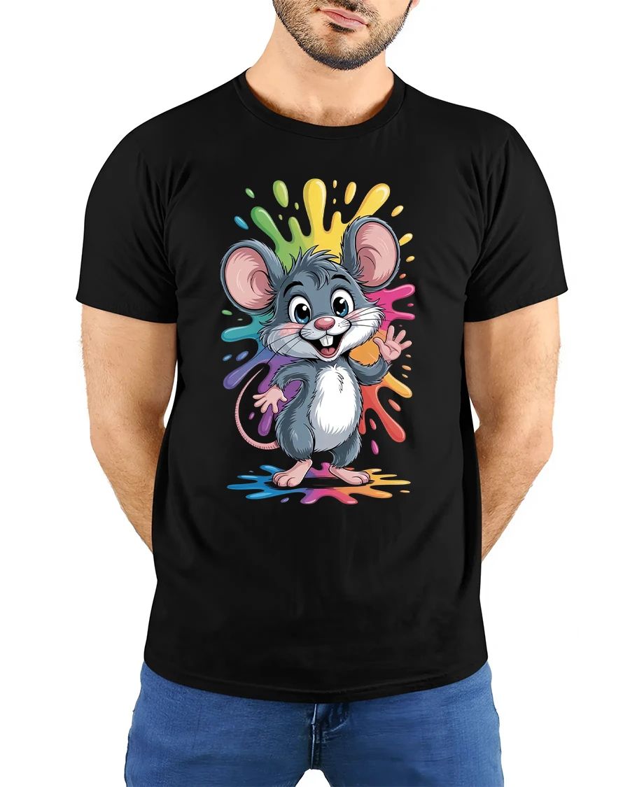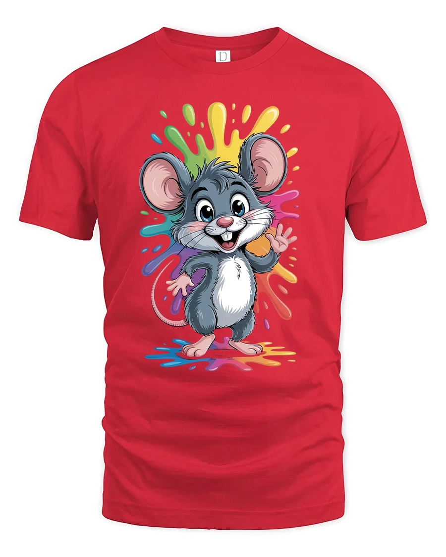 Cute Rainbow Splash Mouse Cartoon Fun Graphic Tee brings cheerful color and adorable character art together in a perfect everyday design. Featuring a happy cartoon mouse standing in front of a vibrant rainbow splash, this tshirt radiates positivity, fun, and pure cuteness. The big expressive eyes, friendly smile, and bright colors make it irresistible for kids, animal lovers, and fans of playful, animated styles.