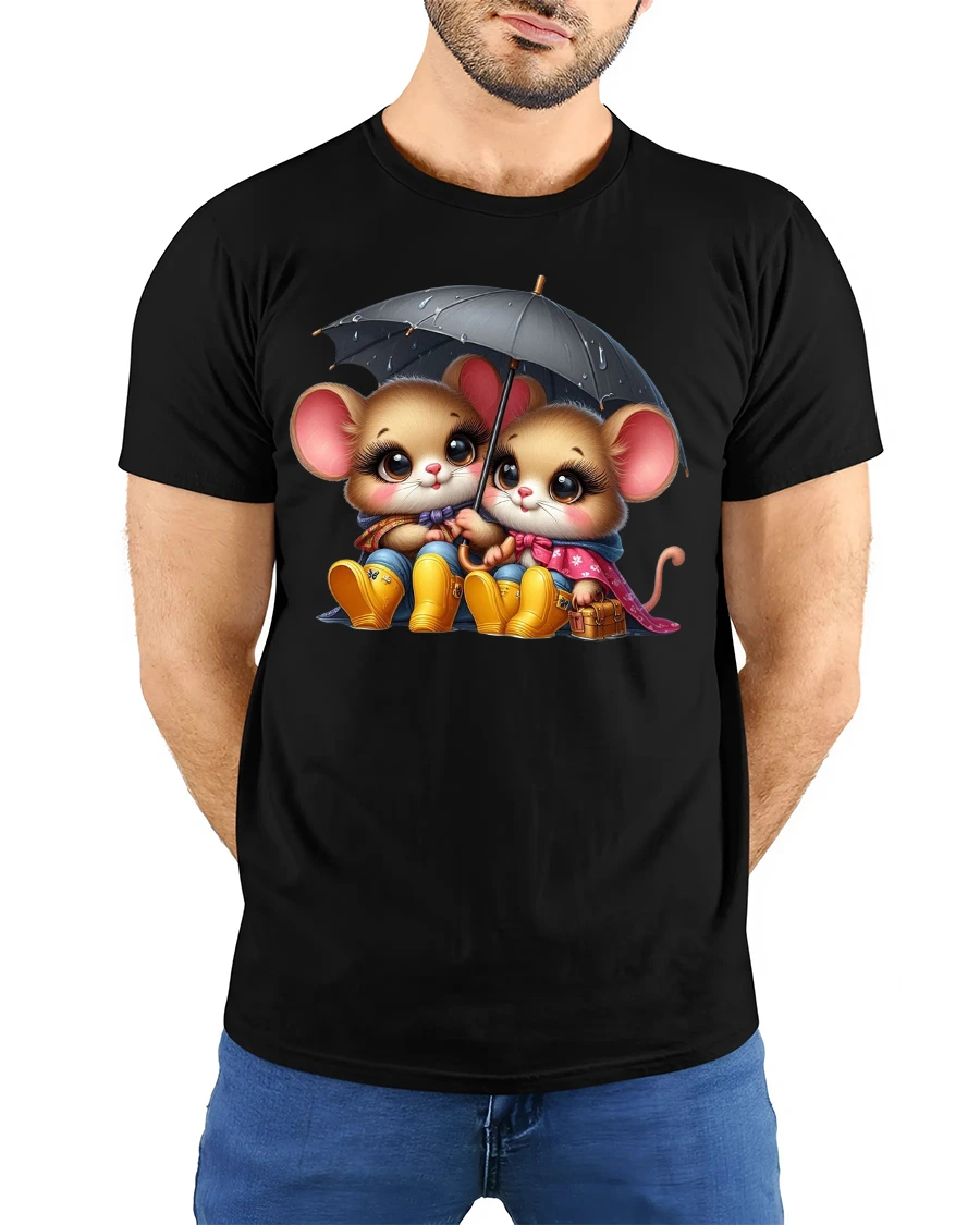 Made from premium soft cotton, this t-shirt ensures comfort all day long. Its vivid, high-quality print brings every tiny detail to life — from the glistening raindrops to the adorable expressions of the mouse duo. Wear it to brighten up gloomy days, or pair it with jeans for a relaxed, fun look.