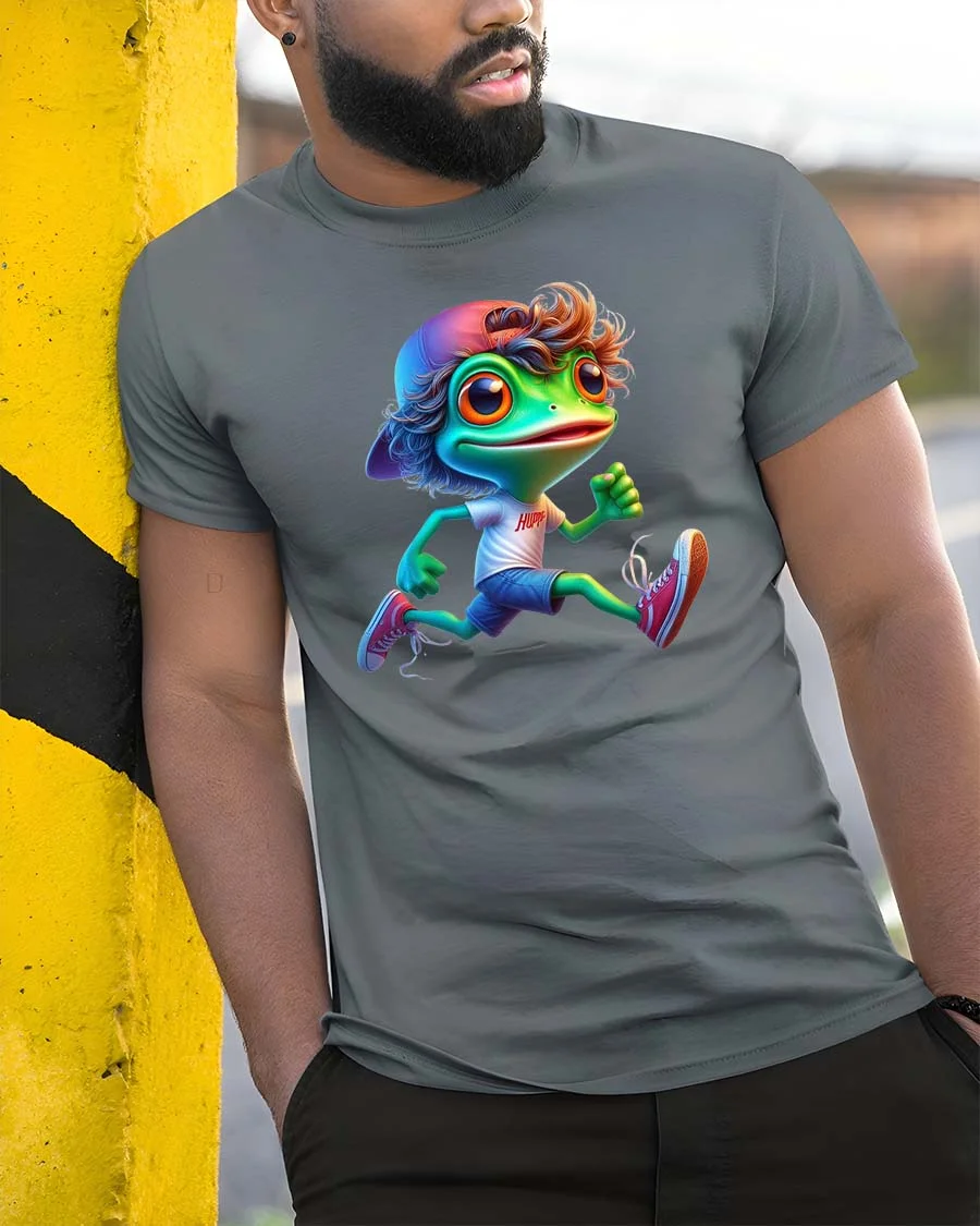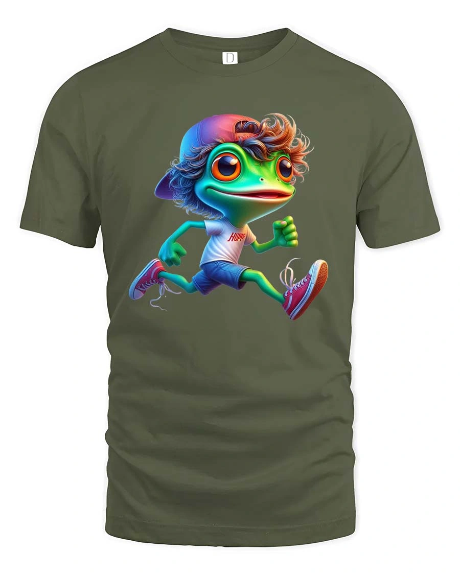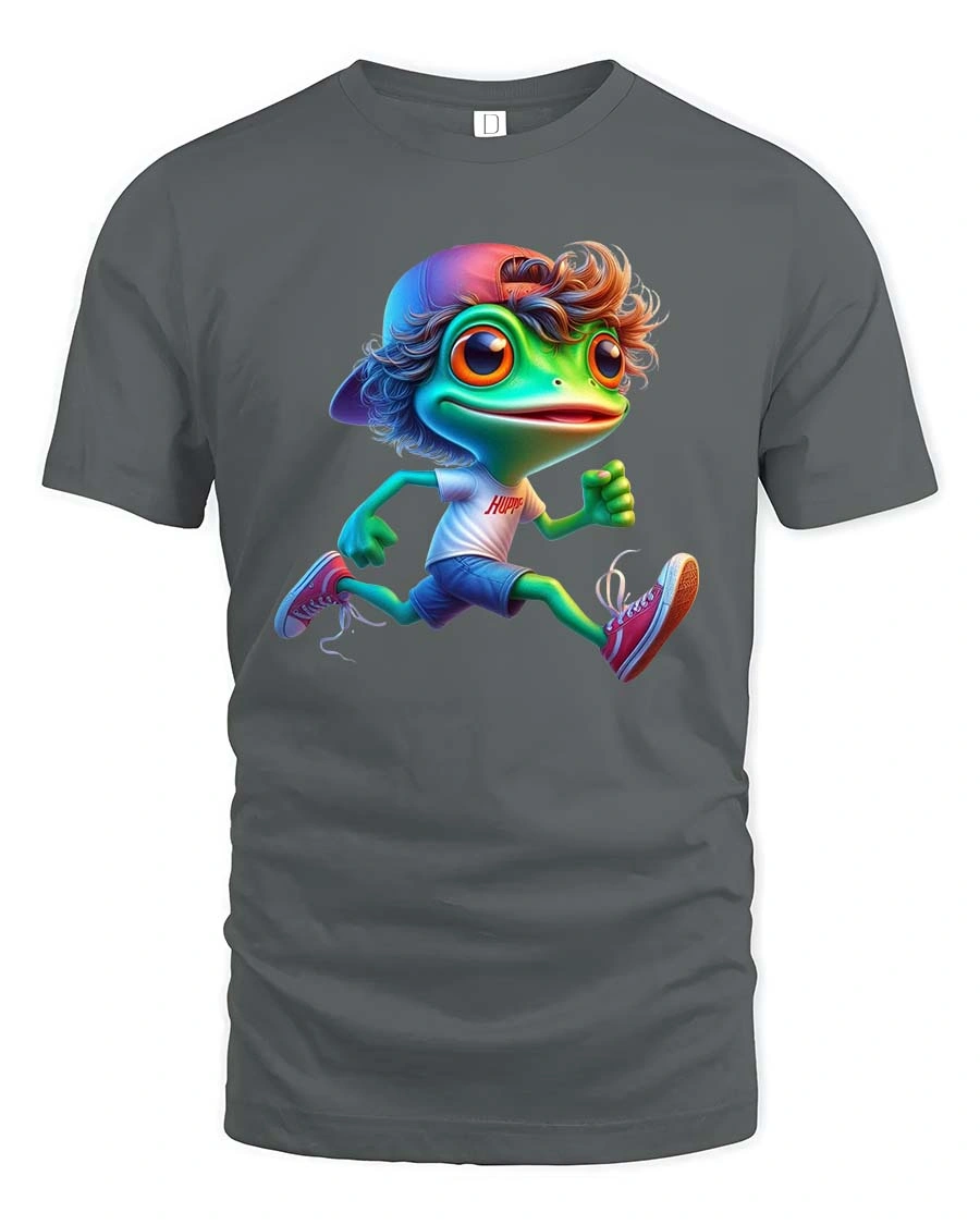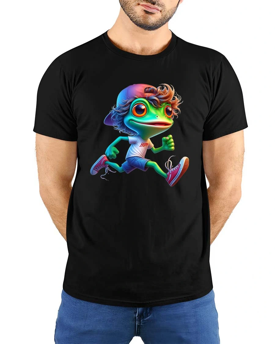 Cute Running Frog Cartoon Graphic T Shirt Funny Sport Style combines humor, movement, and charming character design into a lively graphic tee that adds playful energy to any wardrobe.