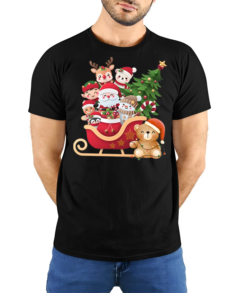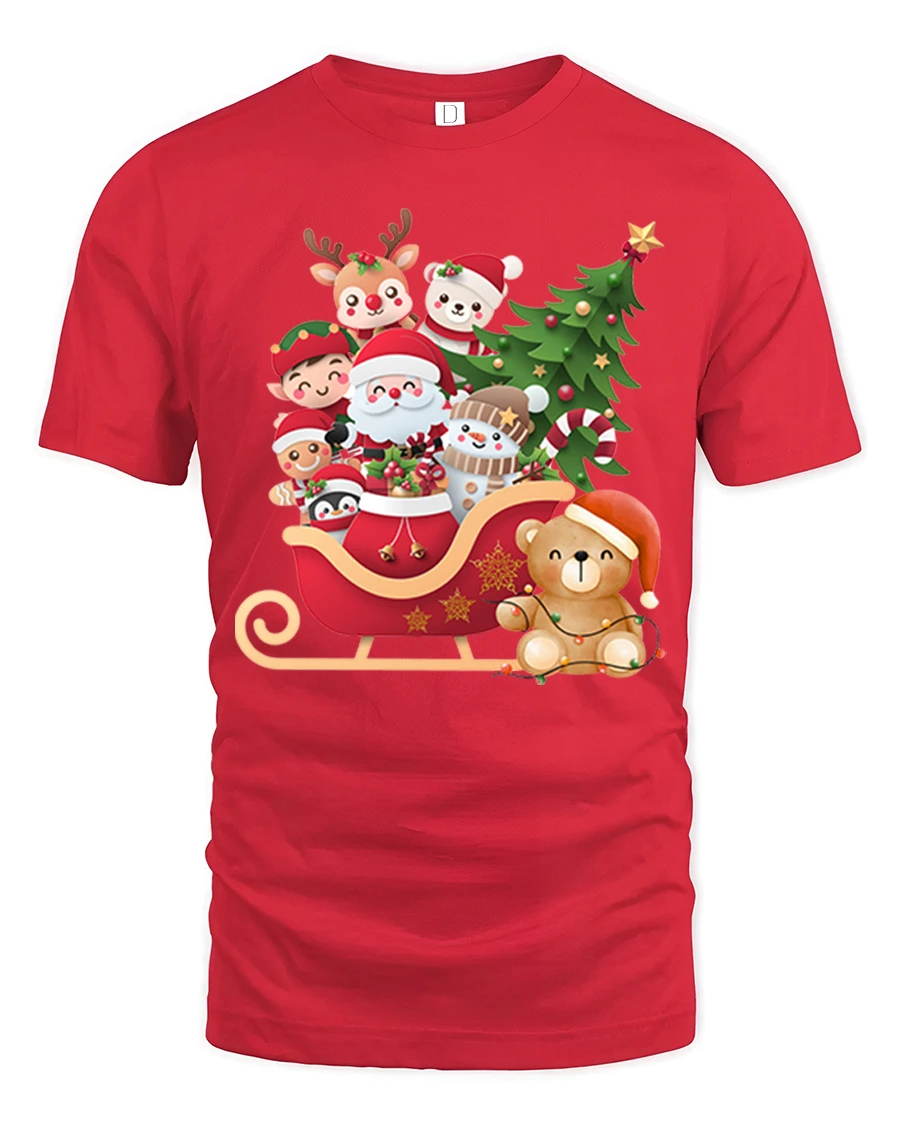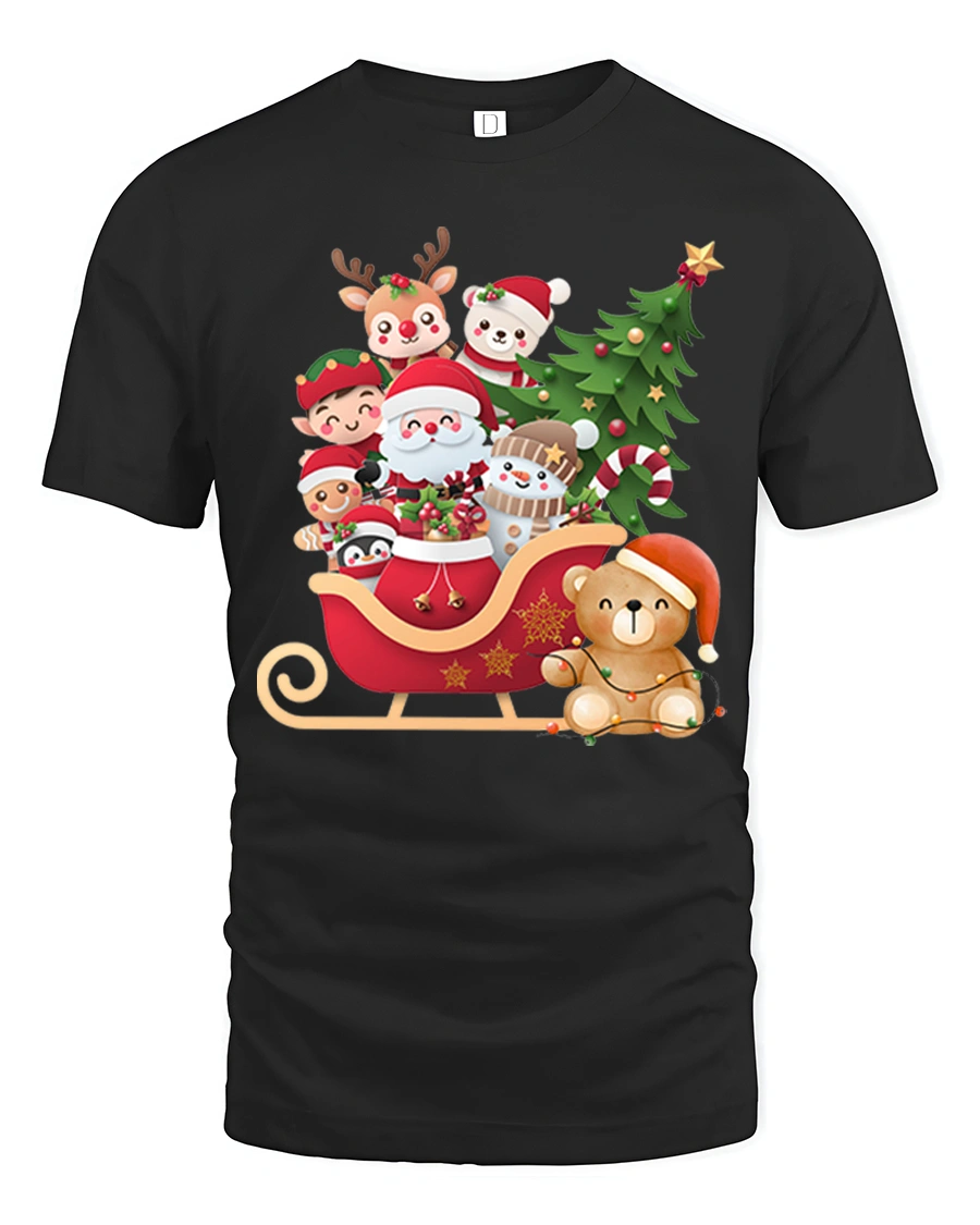 This Cute Santa Sleigh Friends Tee Christmas Characters Holiday Tshirt brings pure joy and festive spirit to your holiday wardrobe. Featuring Santa seated in a cheerful red sleigh surrounded by adorable friends — reindeer, elf, snowman, teddy bear, and more — this tee captures the warmth and magic of Christmas in a fun, colorful design perfect for all ages.