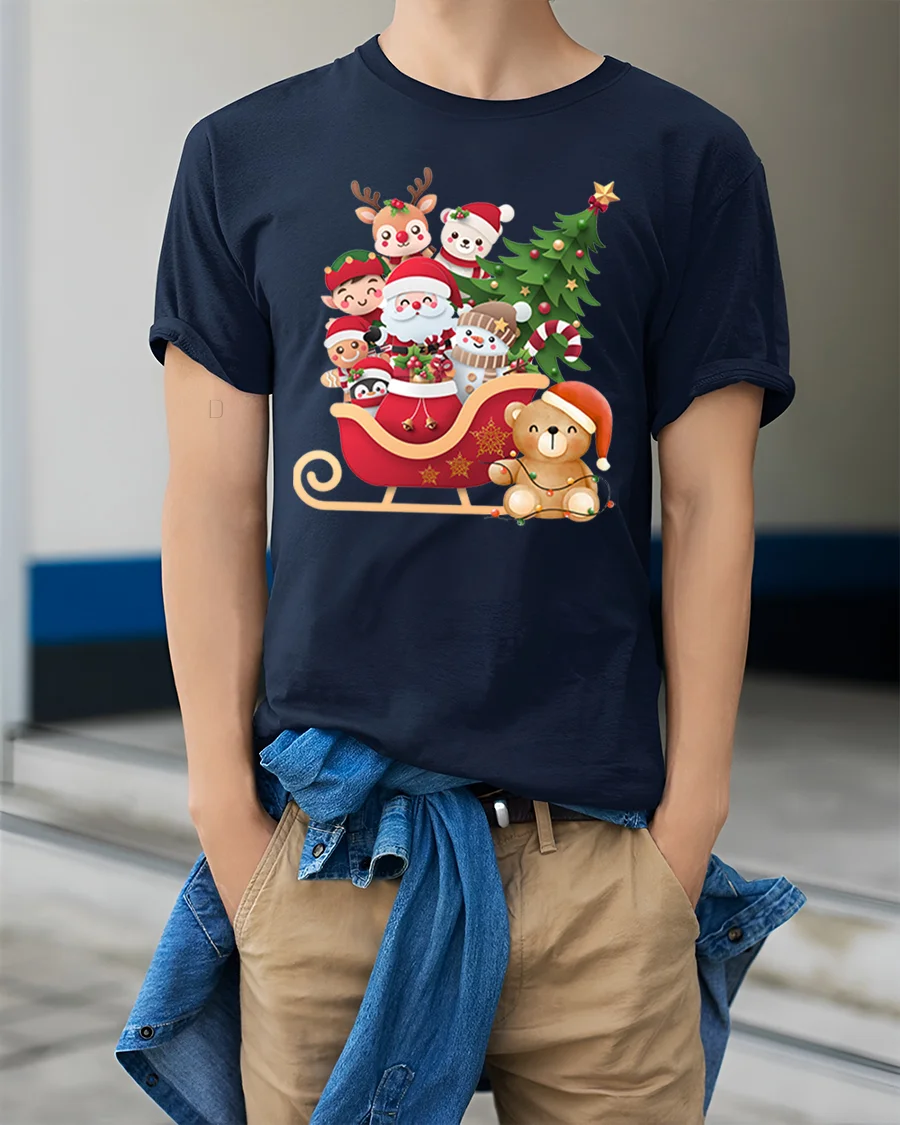 Crafted for comfort and style, this tee is ideal for holiday parties, Christmas family photos, school events, cozy winter gatherings, or casual everyday wear during the season. The cute cartoon characters and bright festive colors make it a great conversation starter and a favorite among kids and adults alike. Whether you love Santa, cuddly animals, or holiday decorations, this tee delivers a delightful blend of charm and festive fun.