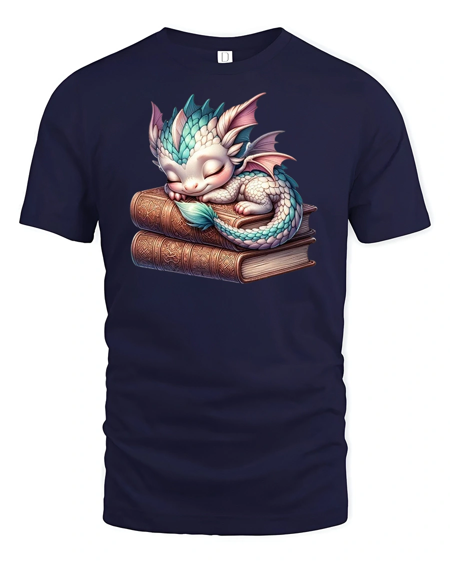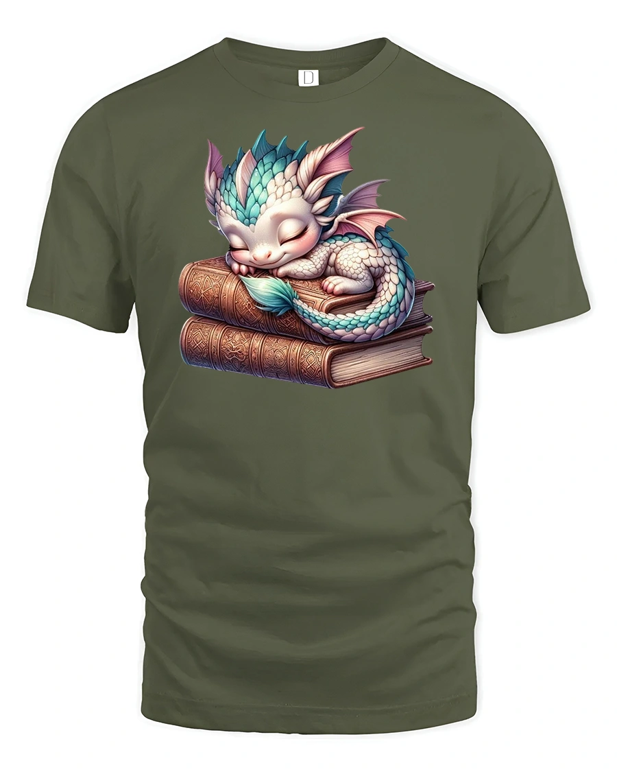 Cute Sleeping Dragon T-Shirt – Fantasy Book Lover Art brings a touch of magic and coziness to your wardrobe.