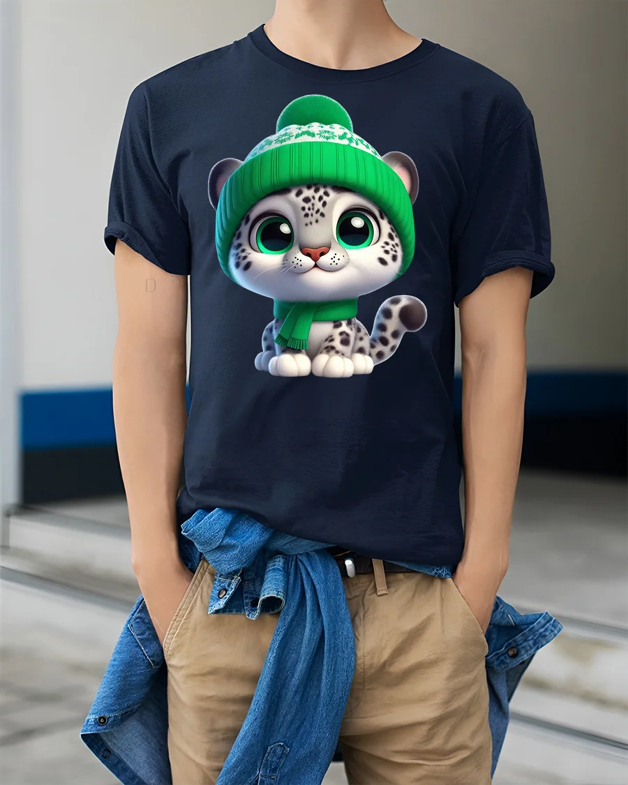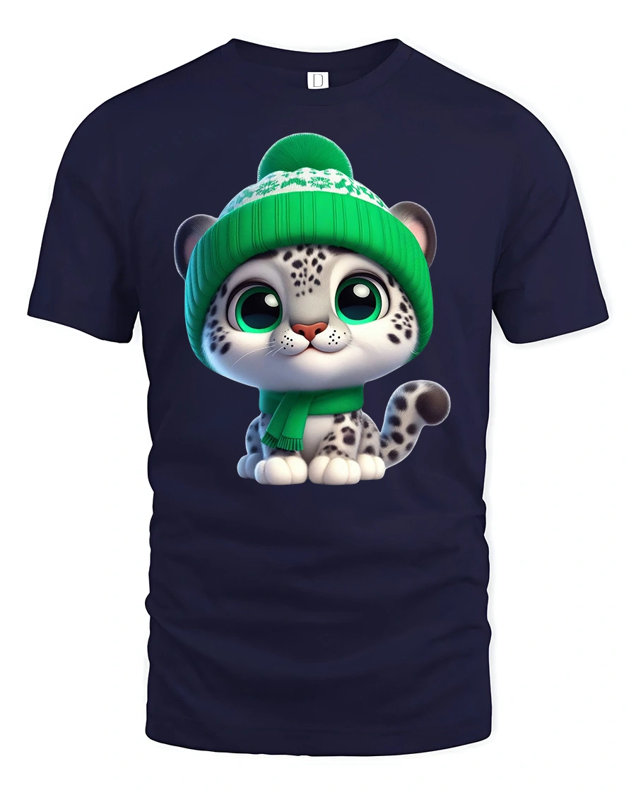 The Cute Snow Leopard Kitten Graphic T Shirt Cozy Winter Vibe is designed to feel comfortable while showcasing bright detailed artwork.
