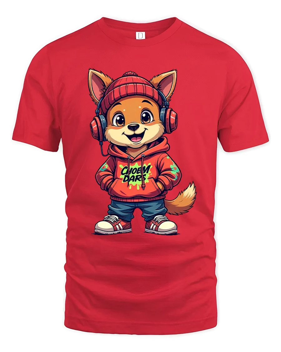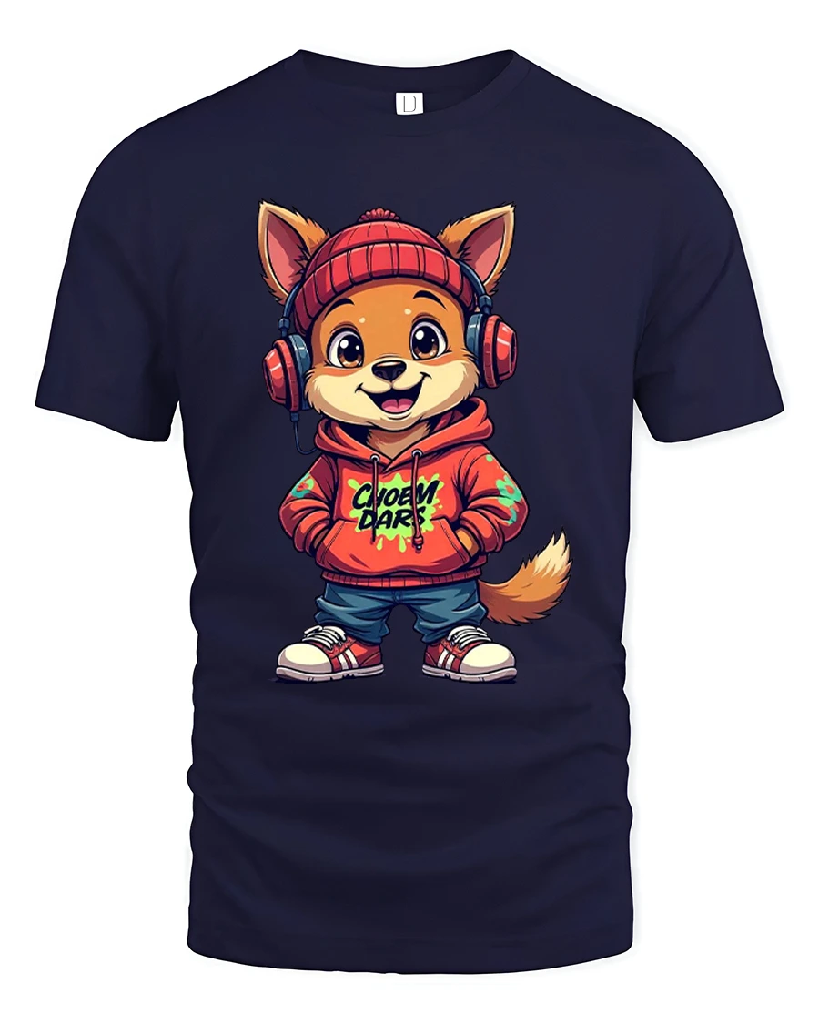 The Cute Street Style Dog With Hoodie And Headphones Graphic T Shirt brings playful urban energy to a fun cartoon design.