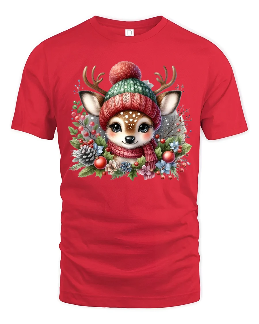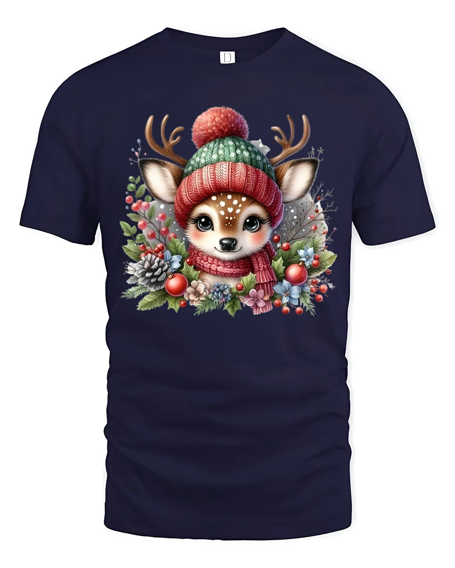 SKU: IMPD2511a6-1 Category: Festive Tags: adorable fawn tee, baby deer tshirt, christmas cartoon tee, christmas deer shirt, cozy winter tshirt, cute holiday tee, festive animal top, festive graphic shirt, holiday spirit shirt, kawaii deer shirt, knit hat deer tee, seasonal cute top, winter deer shirt, winter floral shirt, winter woodland tee
