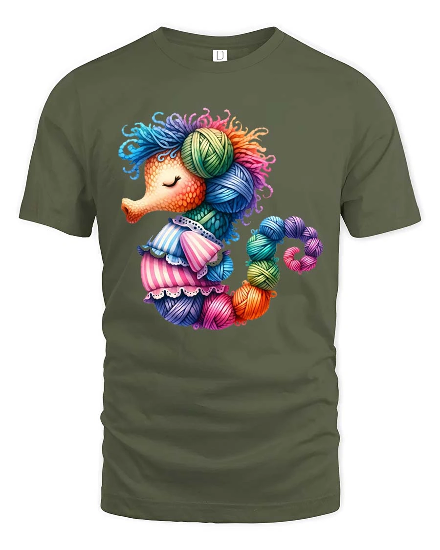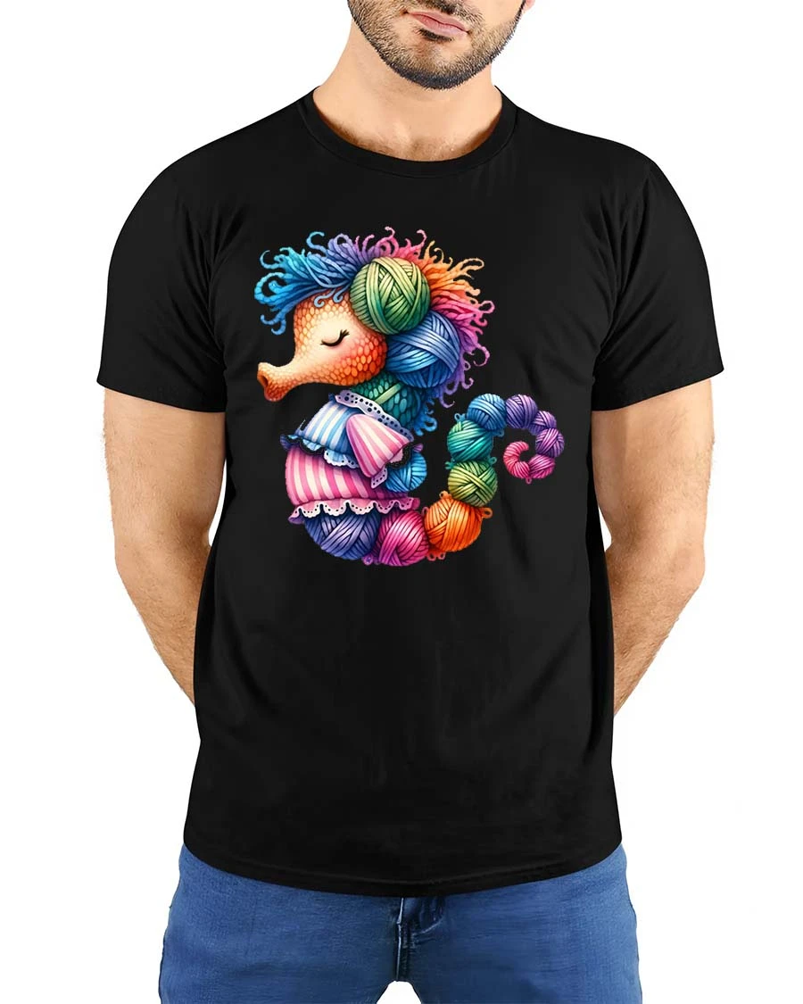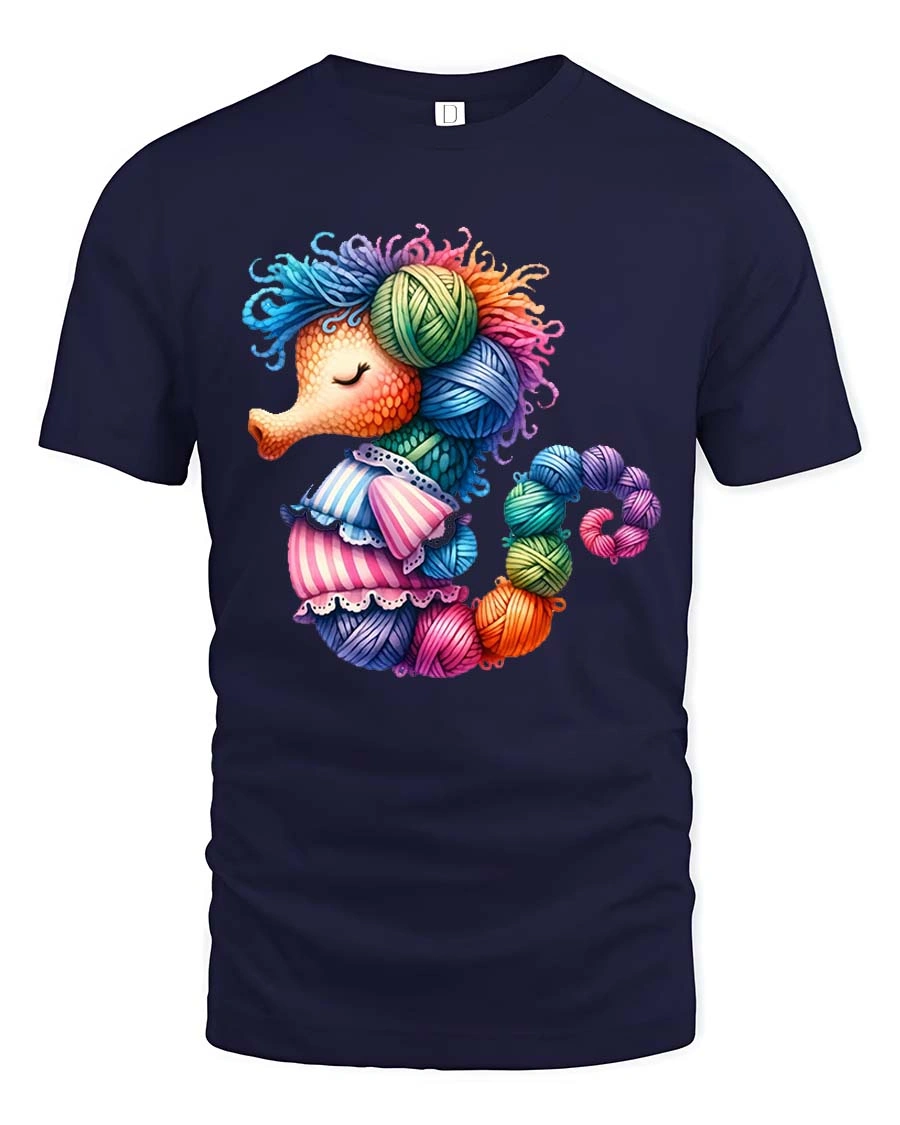 Cute Yarn Seahorse Knitting Lover Colorful Graphic T Shirt brings a charming and creative vibe to everyday style.