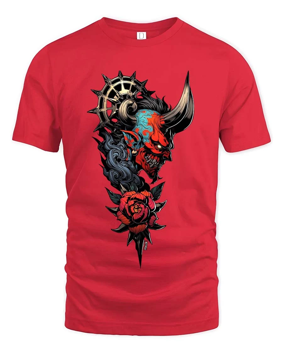 Cyberpunk Robotic Hand Rose Graphic T Shirt Tech Art Tee - red t-shirt on white background