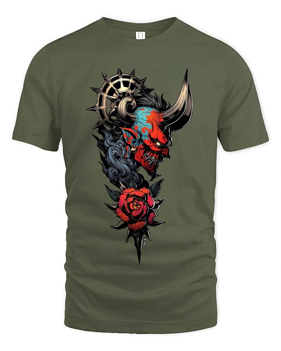 Cyberpunk Robotic Hand Rose Graphic T Shirt Tech Art Tee - military green t-shirt on white background