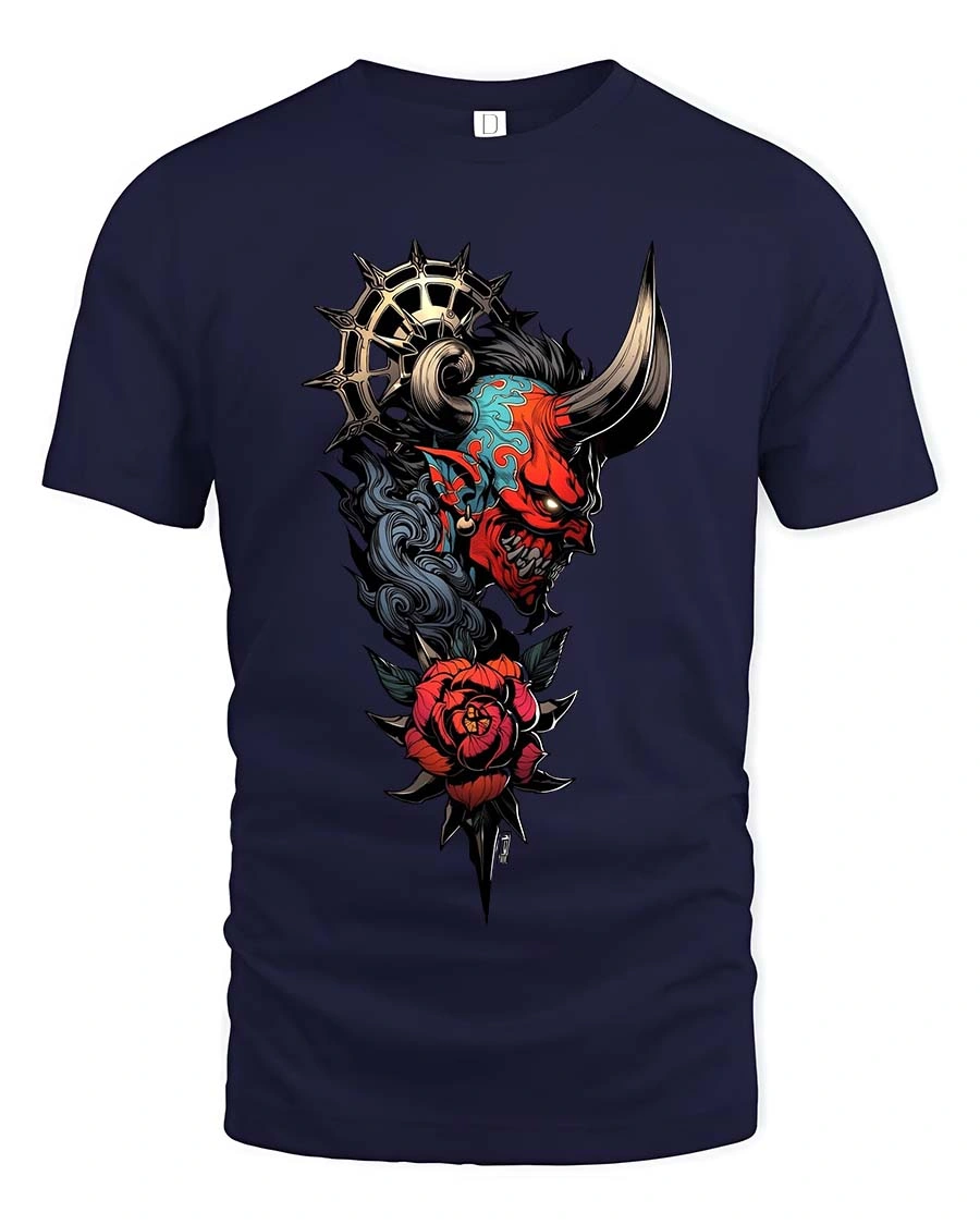 Cyberpunk Robotic Hand Rose Graphic T Shirt Tech Art Tee - navy t-shirt on white background