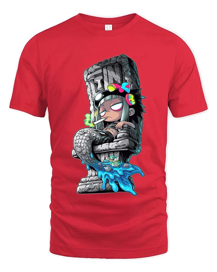 Dark Anime Statue Girl Graphic T Shirt Urban Street Art - red t-shirt on white background
