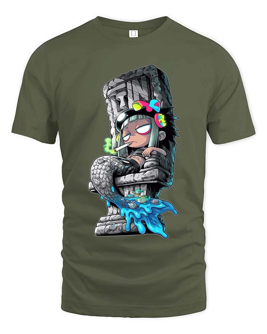 Dark Anime Statue Girl Graphic T Shirt Urban Street Art - military green t-shirt on white background