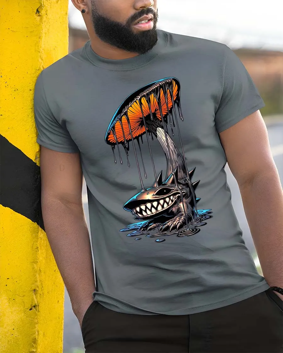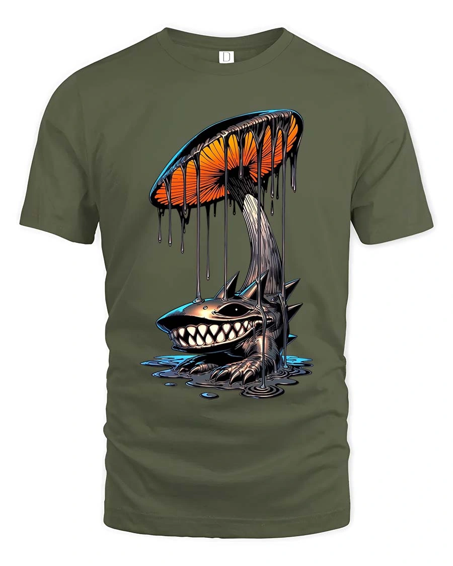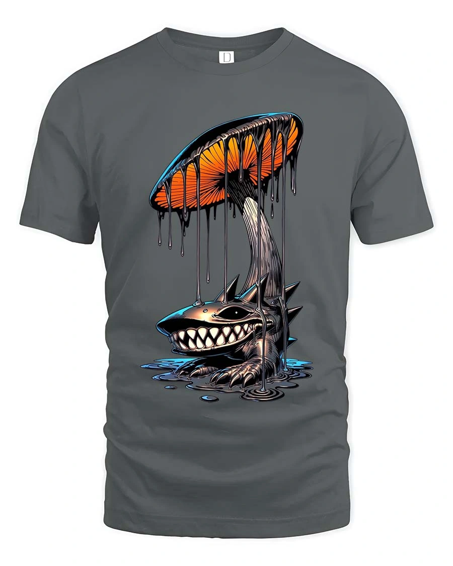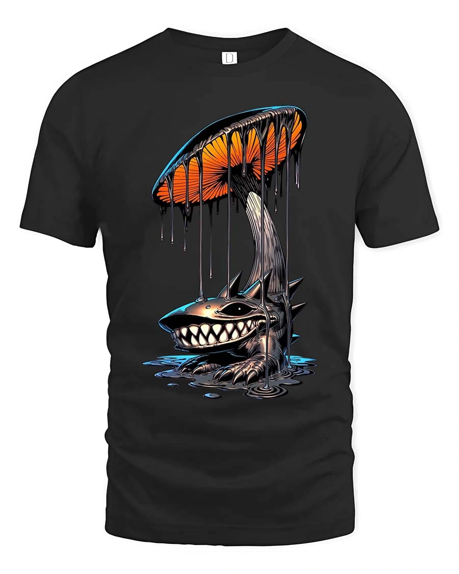 Dark Mushroom Monster Graphic T Shirt Creepy Dripping Art Style showcases a striking blend of fantasy and horror with a bold artistic twist.