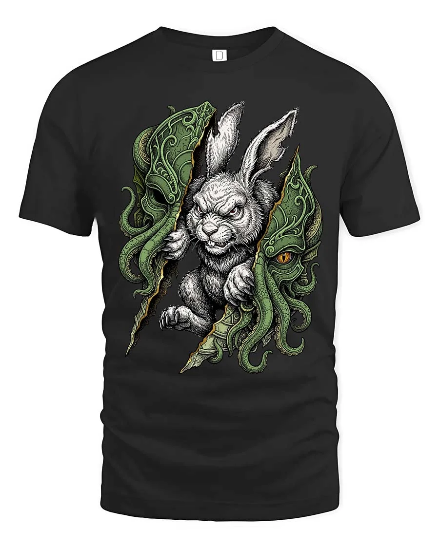 SKU: IMPD0404a9-1 Category: Hobbies Tags: creepy bunny tshirt, cthulhu t shirt, dark fantasy shirt, dark rabbit tee, edgy graphic tee, gothic animal tshirt, gothic creature shirt, horror art tshirt, horror graphic tee, lovecraft shirt, monster bunny tee, spooky animal tee, tentacle creature tshirt, unique creepy shirt, weird fantasy tshirt