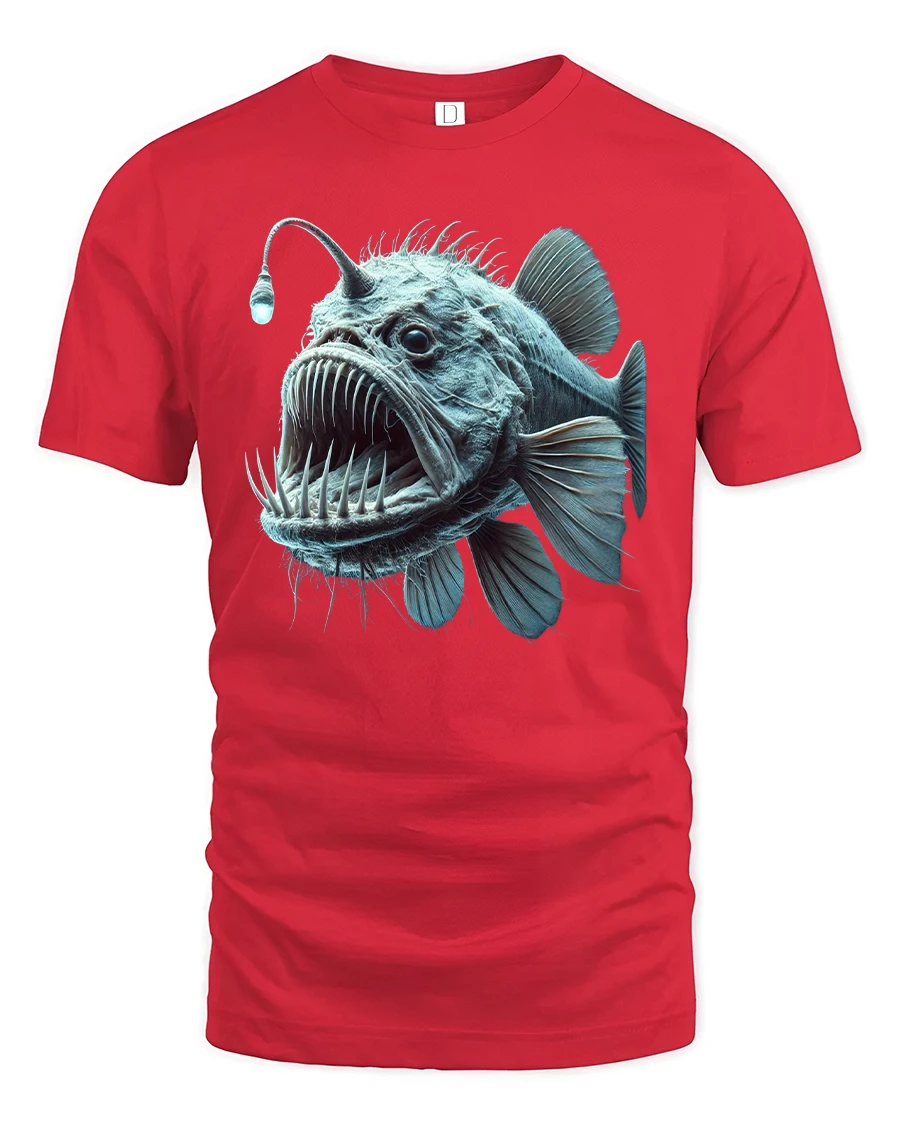 SKU: IMPD0411a16-1 Category: Animals Lover Tags: angler fish illustration, anglerfish tee, aquatic beast design, dark ocean tshirt, deep ocean artwork, deep sea fish tshirt, deep sea predator design, fierce sea creature tee, marine predator shirt, ocean horror tee, ocean monster shirt, realistic fish graphic, scary fish graphic, sea creature artwork, underwater creature tee