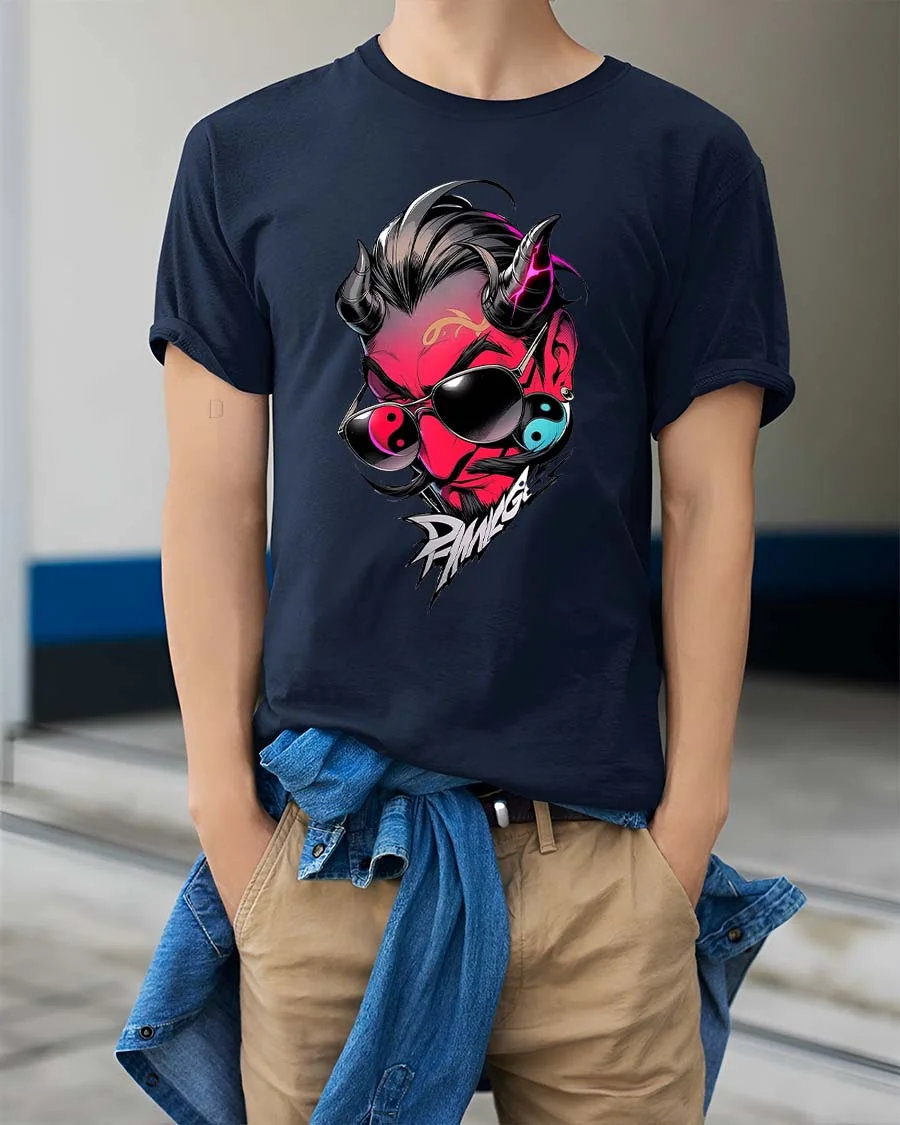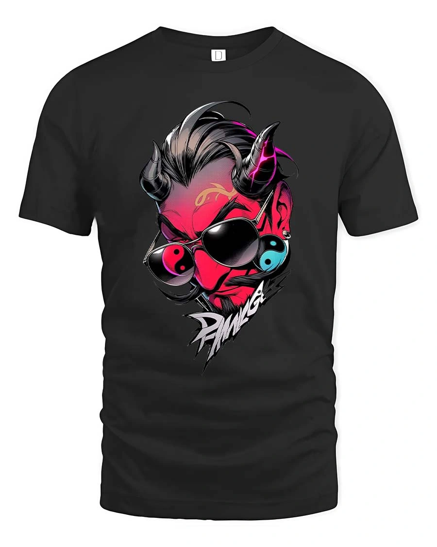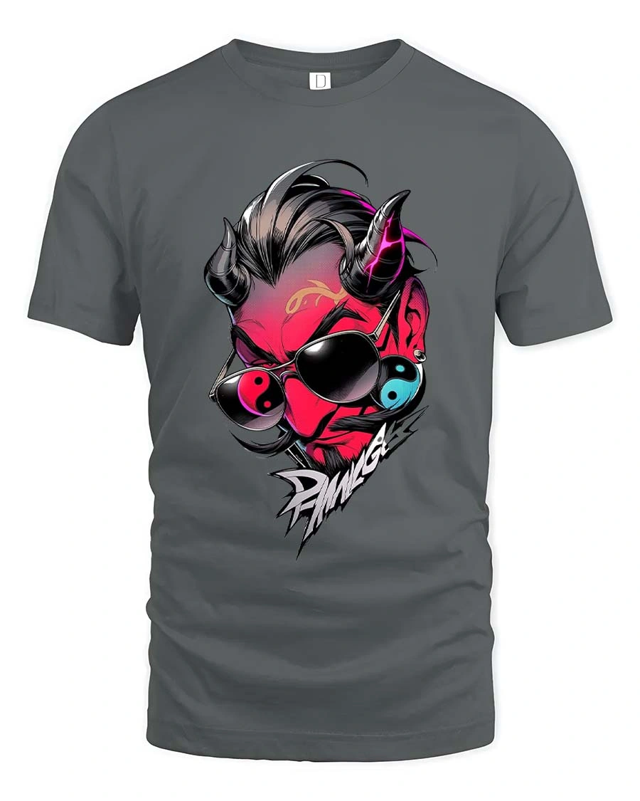 The bold devil character paired with yin yang elements creates a powerful visual that stands out with attitude and edge.