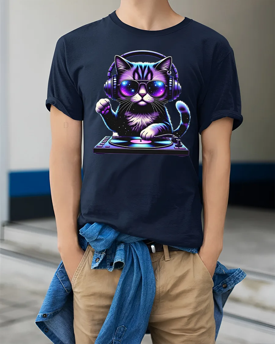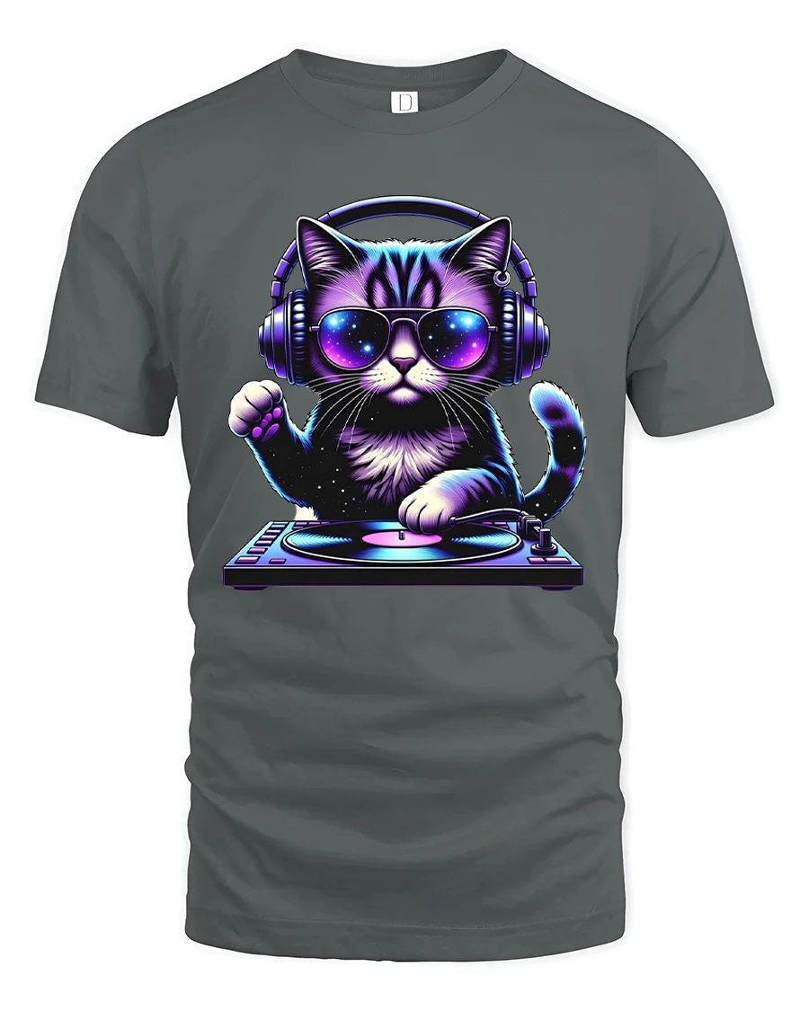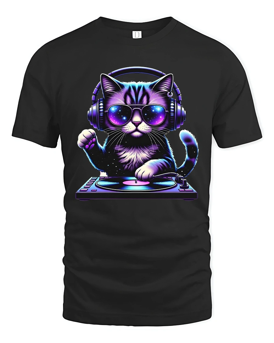 DJ Cat Music Lover Tshirt Cool Neon Headphones Party Vibe delivers a playful mix of music culture and adorable style.