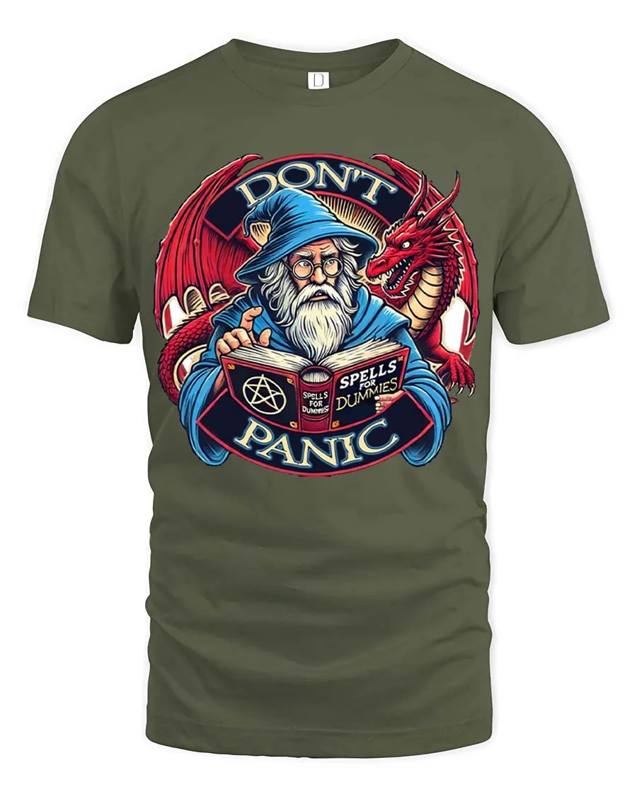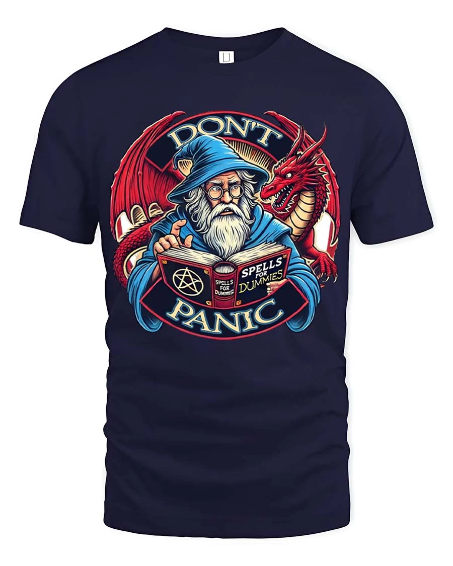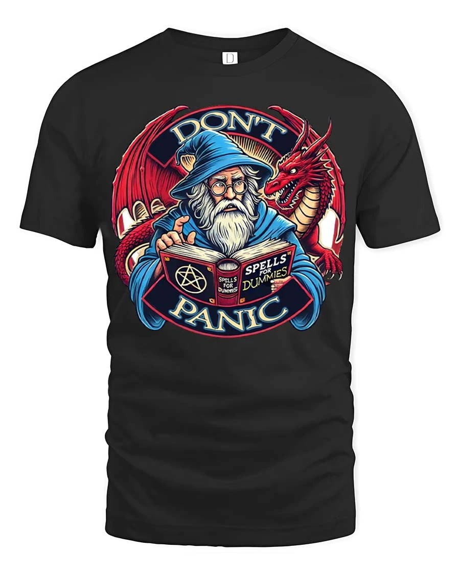 Dont Panic Wizard Dragon Graphic T Shirt Funny Fantasy Style brings humor and imagination together in a bold and creative design.