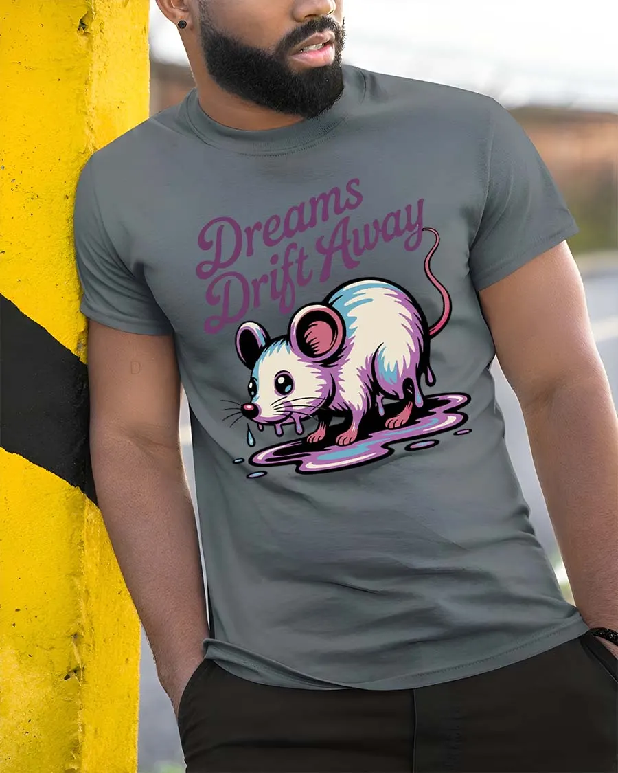 Dreams Drift Away Mouse Graphic T-Shirt Cute Surreal Tee features a soft and imaginative design that blends emotion with playful style.