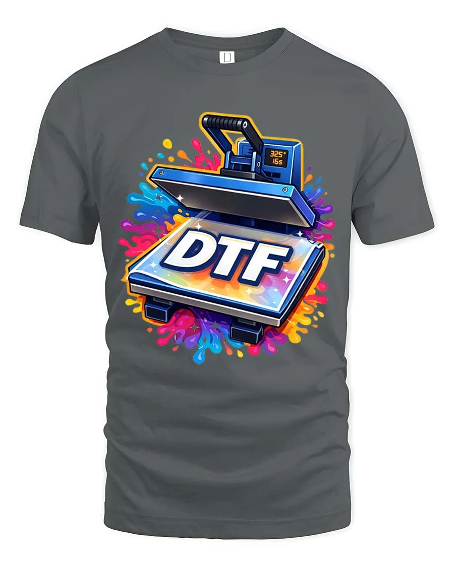 DTF Heat Press Printing Funny Graphic T-Shirt Color Splash highlights creative energy with a bold and vibrant design inspired by modern printing culture.