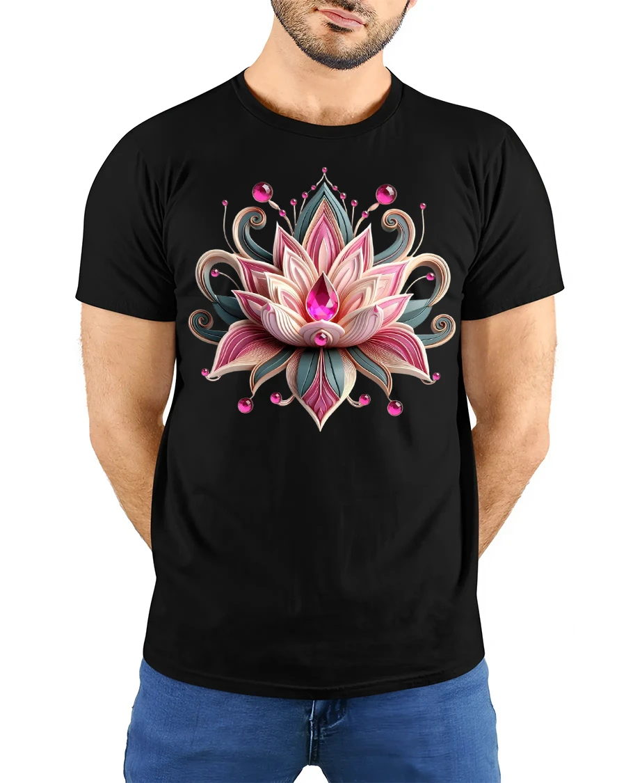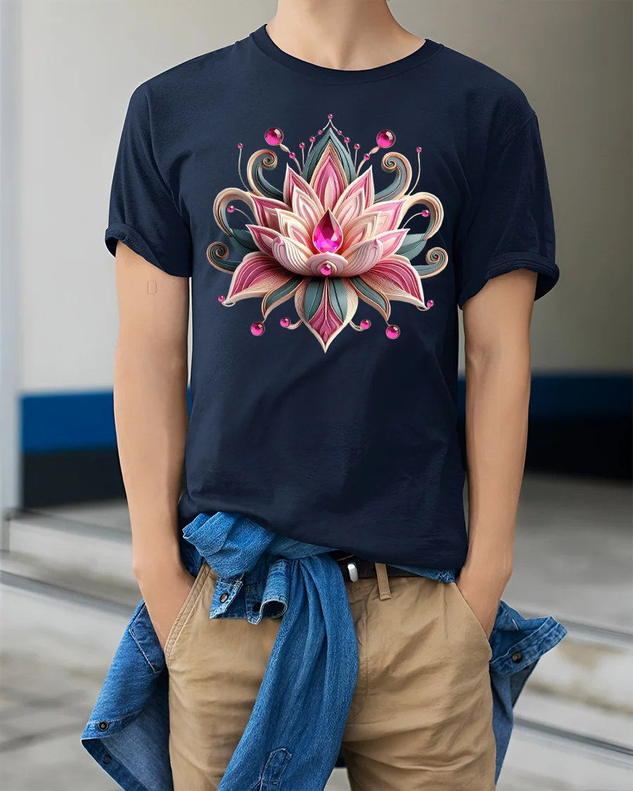 This lotus flower tee is ideal for those who appreciate artistic floral graphics, spiritual symbolism, or stylish designs with a refined touch. The jewel-inspired elements add a touch of luxury, making the tee suitable for casual wear, creative outfits, or moments when you want to express calm beauty and inner balance.