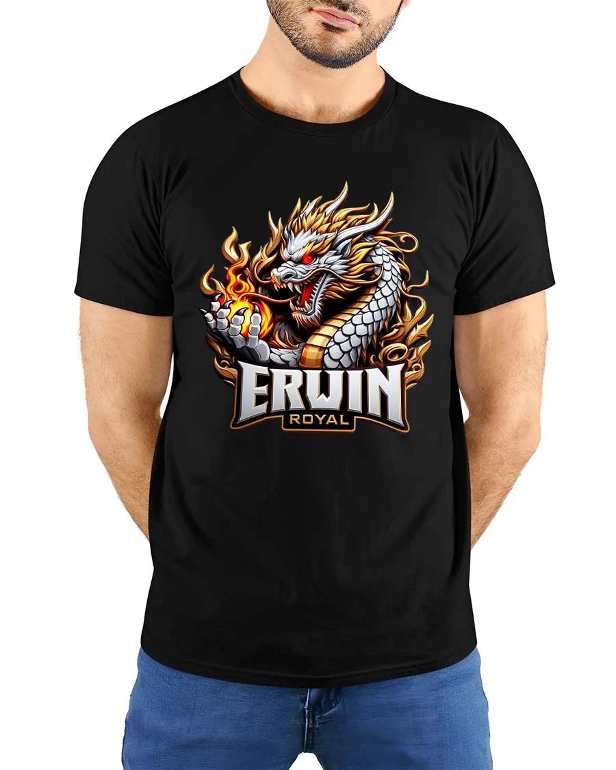 The Erwin Royal Fire Dragon Graphic T Shirt Mythic Power Style is designed to showcase mythical energy and bold fashion attitude in one unique graphic tee.