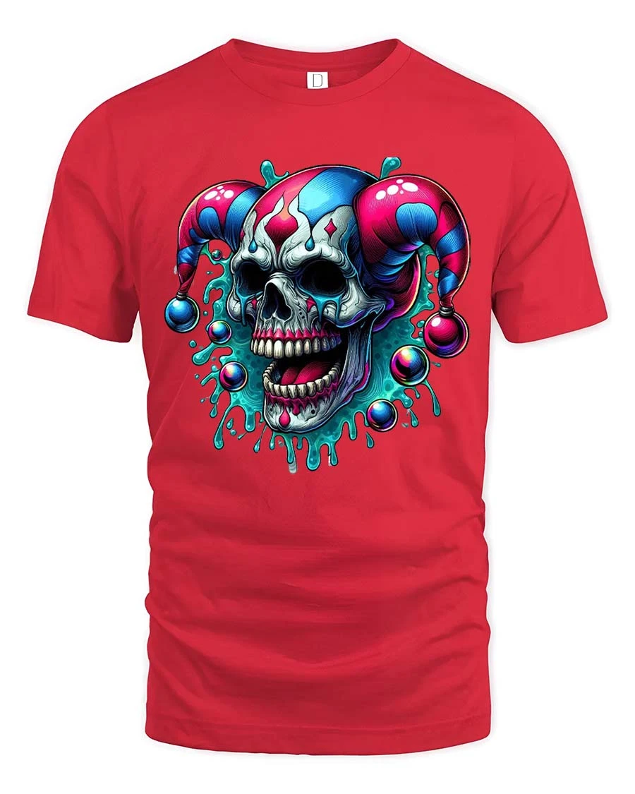 Evil Jester Skull T-Shirt Dark Clown Horror Graphic Tee - red t-shirt on white background