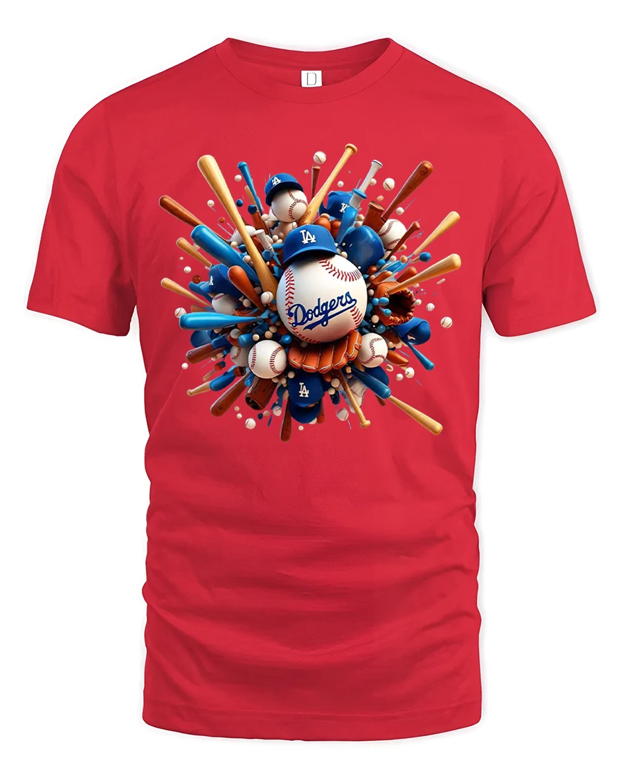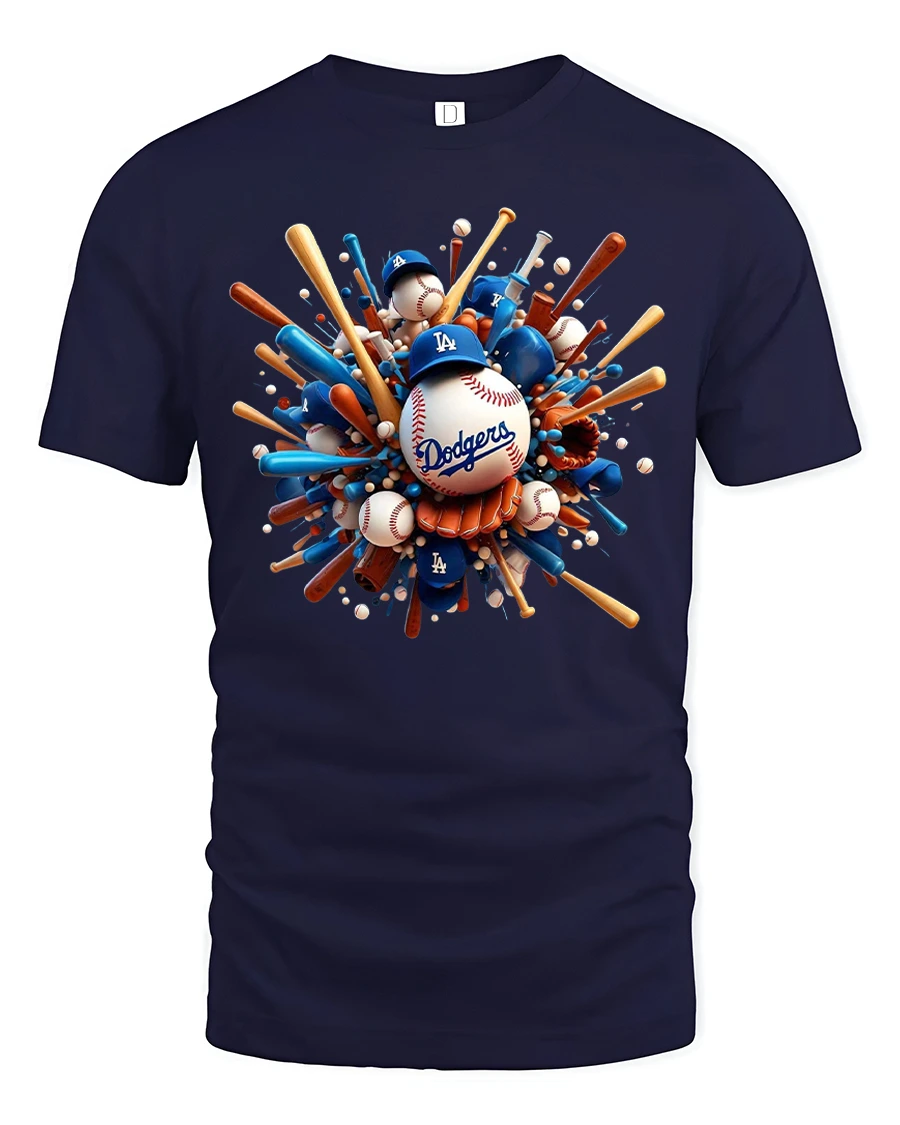 Featuring a bold 3D design of bats, balls, gloves, and caps bursting outward, this tee perfectly reflects the thrill of the game.