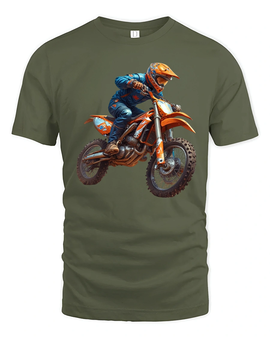 The Extreme Motocross Dirt Bike T Shirt With High Speed Action Art is perfect for riders racing fans and anyone who lives for speed.