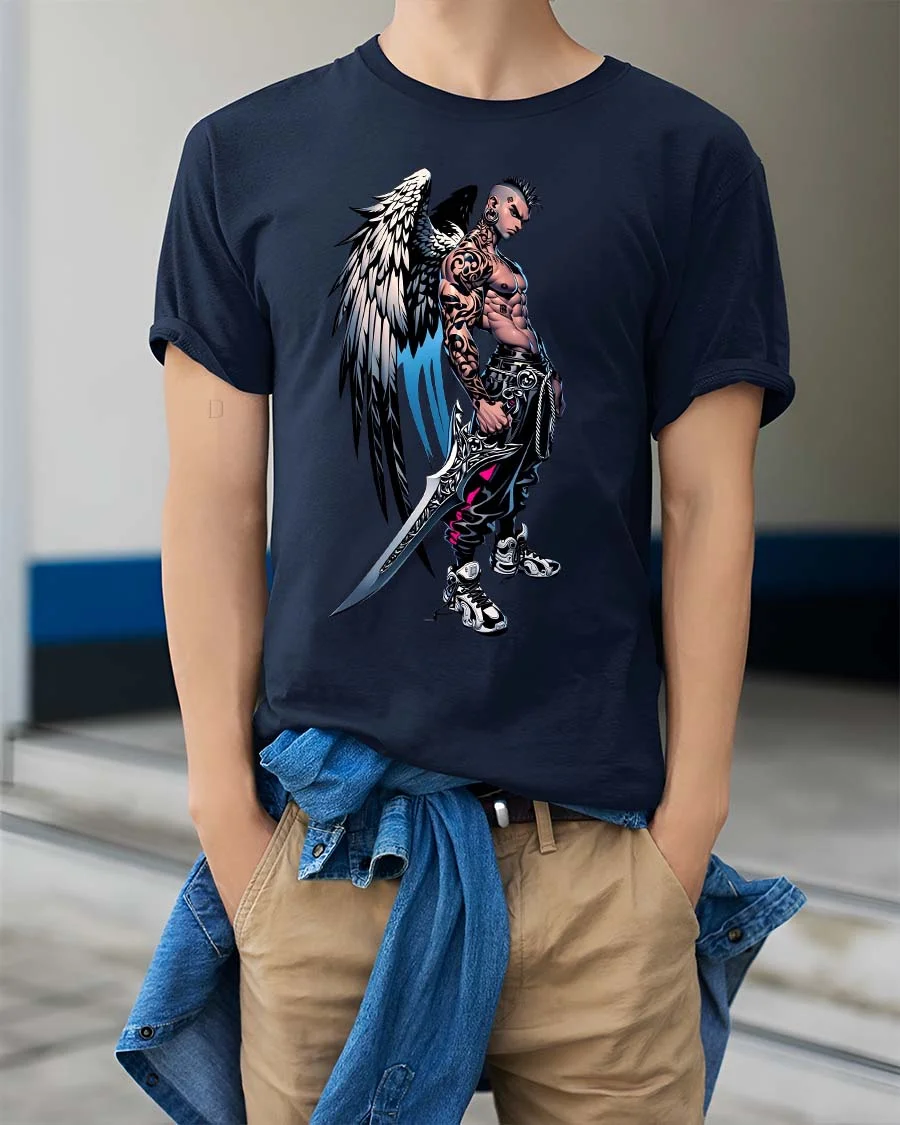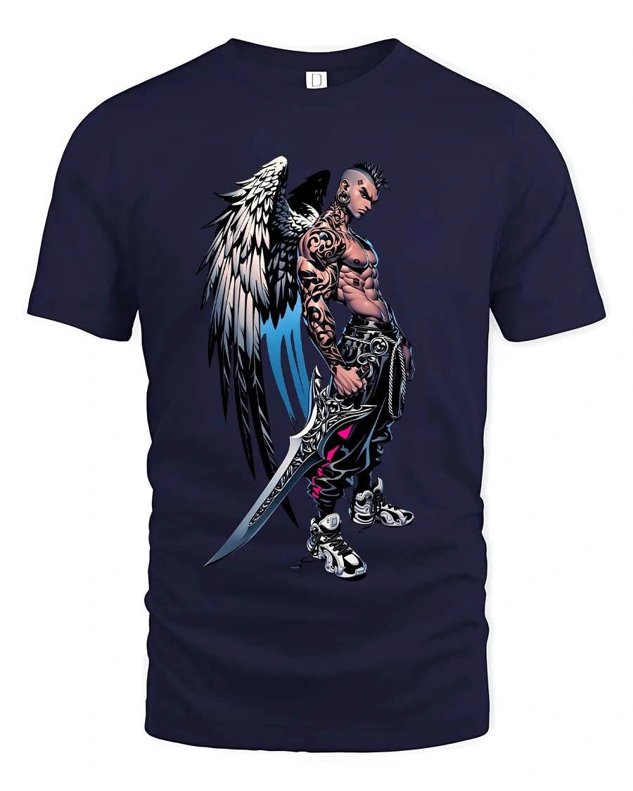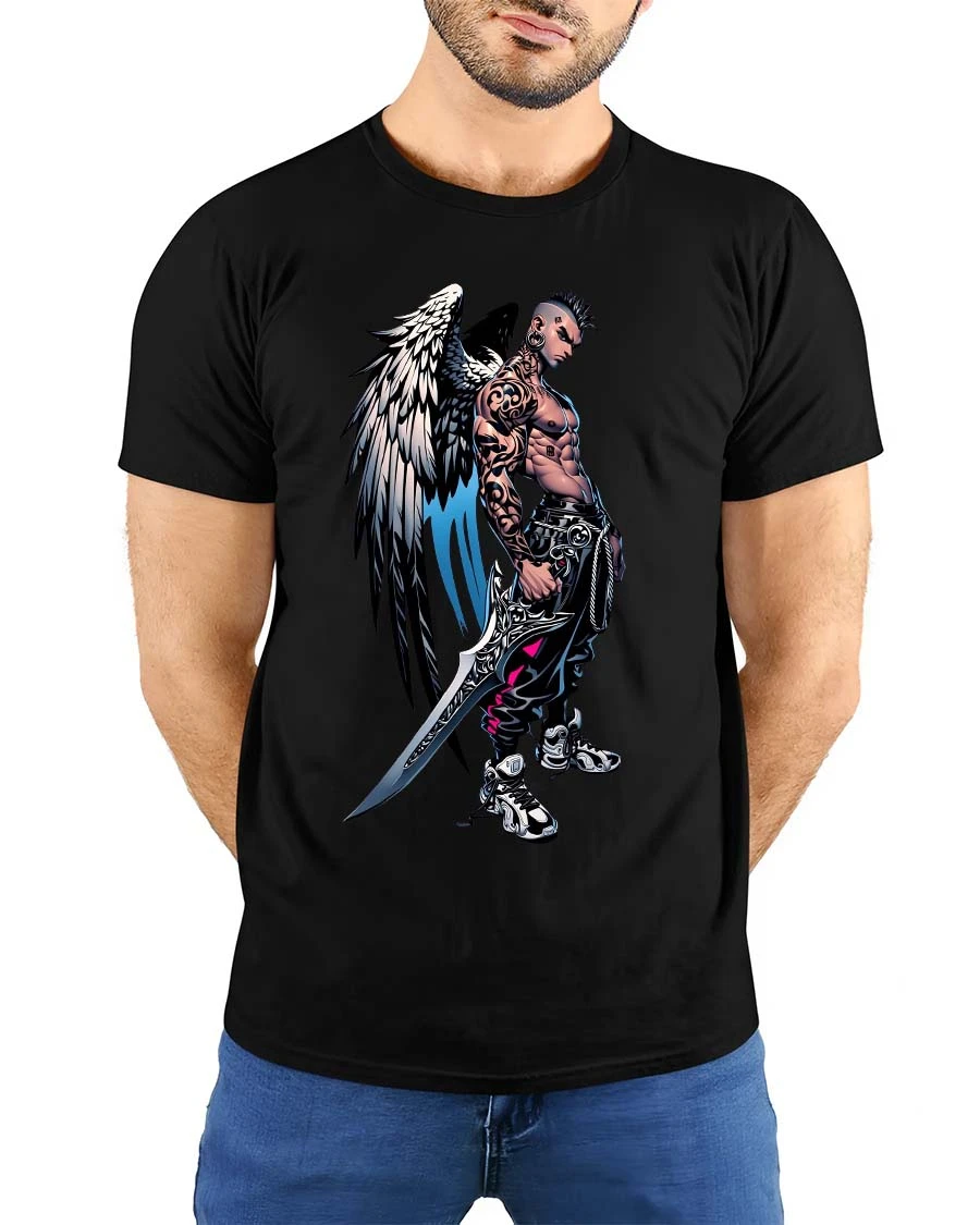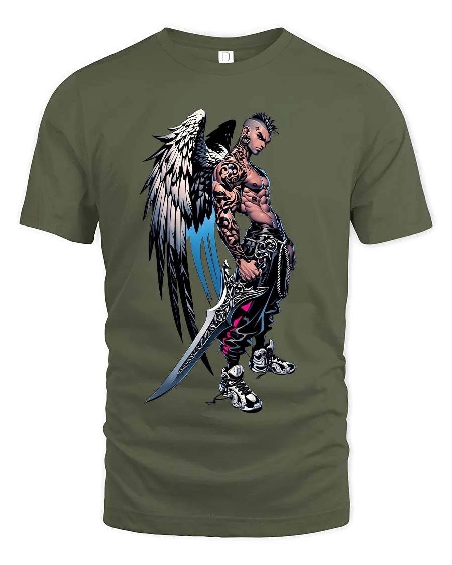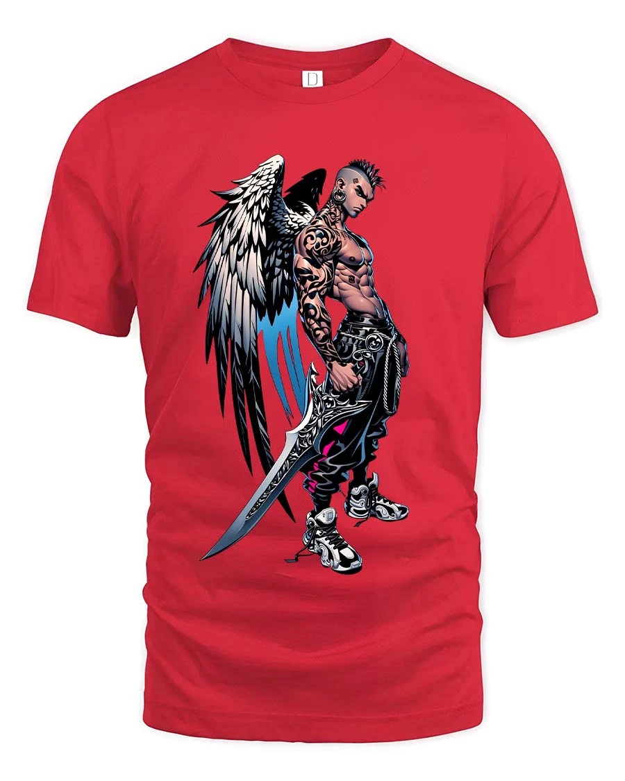 Fallen Angel Warrior Tattoo Graphic T Shirt Dark Street Style showcases a powerful and edgy design inspired by dark fantasy and modern streetwear aesthetics.