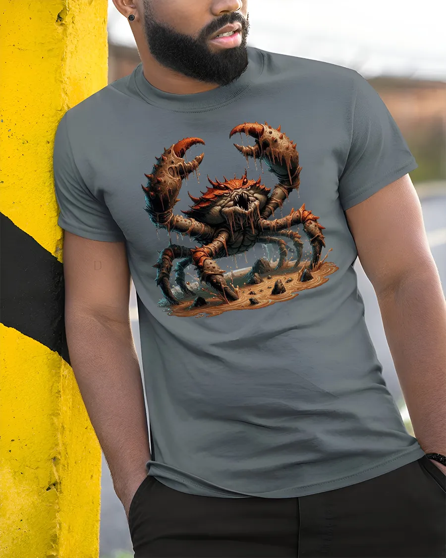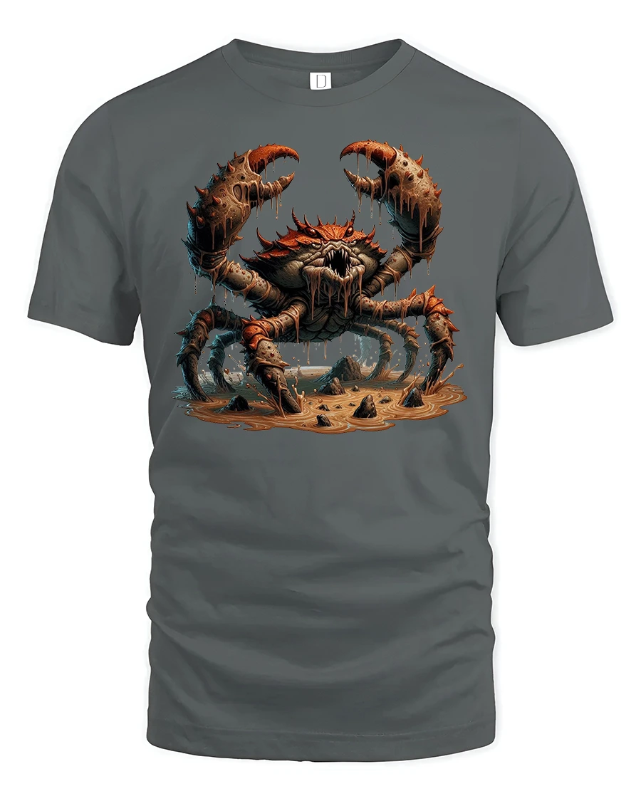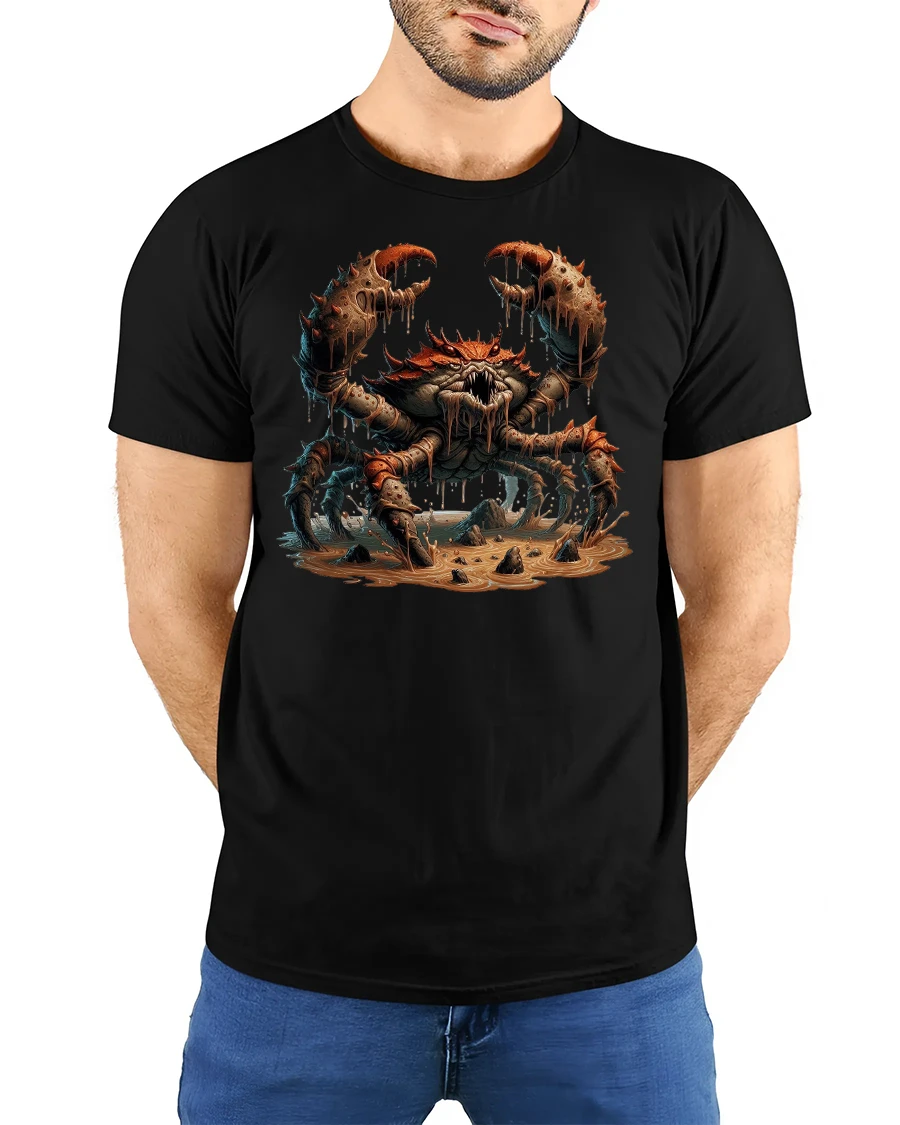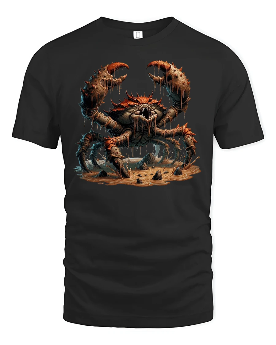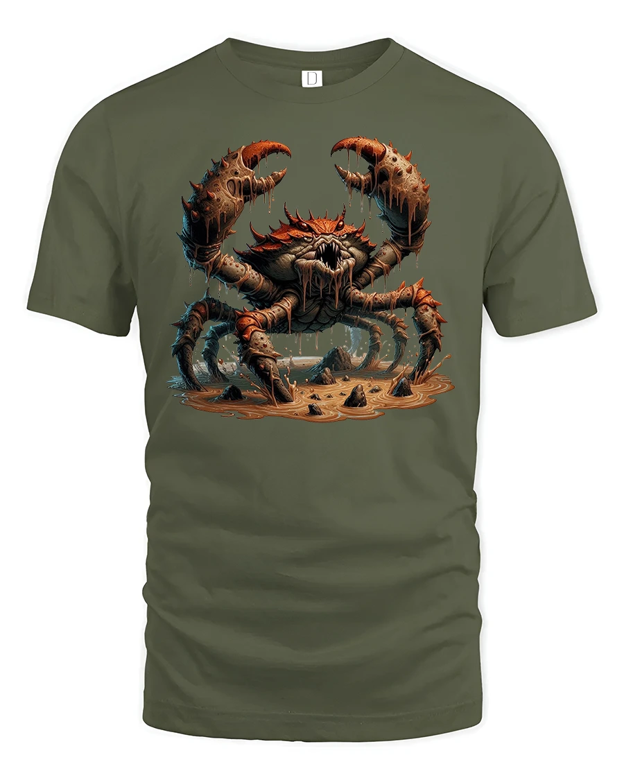 Ferocious Monster Crab Graphic Battle Scene T-Shirt brings bold, dramatic fantasy art to life with an intense creature design that demands attention. Featuring a massive, mud-covered crab monster rising from a swirling swamp, this tee combines dark fantasy themes with high-detail artwork for fans of epic creatures and mythical battles. The sharp claws, fierce face, and dripping textures give the design a powerful and dynamic look perfect for anyone who loves monstrous and imaginative illustrations.