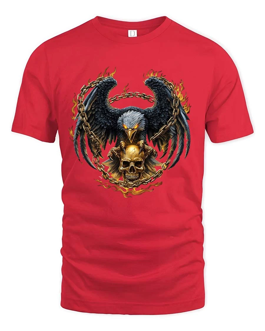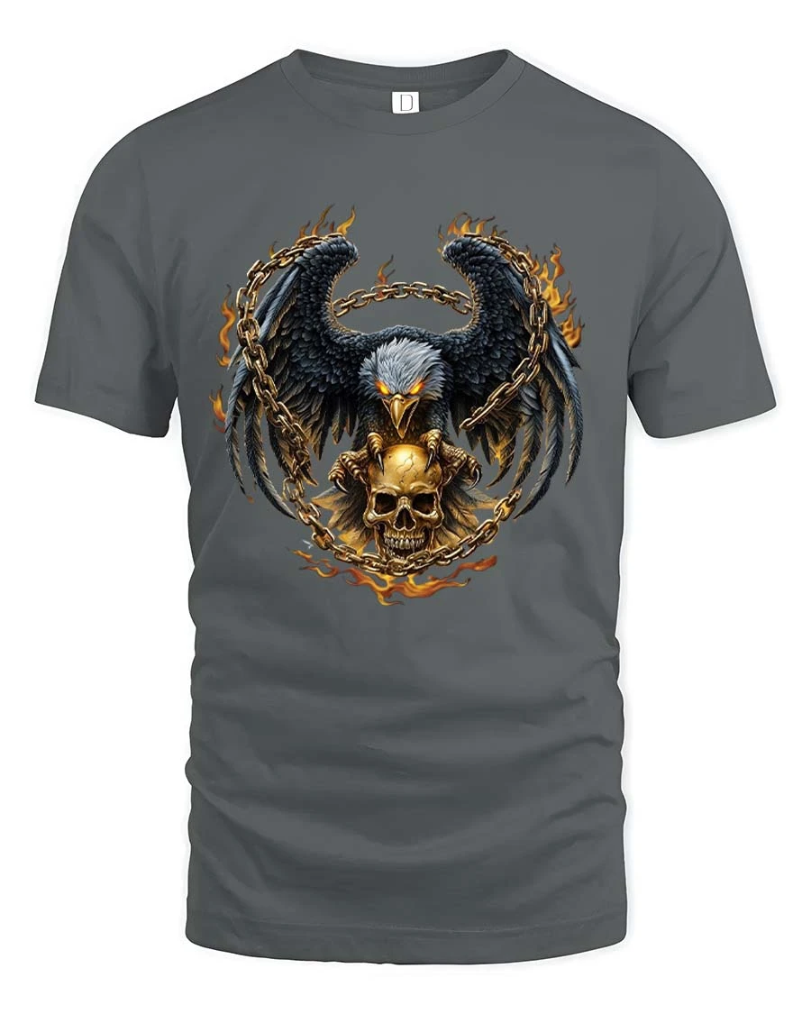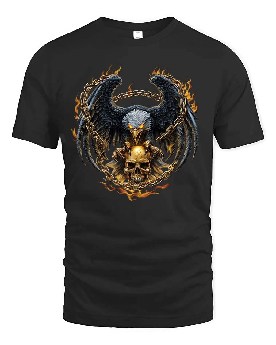 Fierce Eagle Skull Chain Flame Gothic Biker Graphic T Shirt delivers a bold and intense design that captures raw power and dark style.