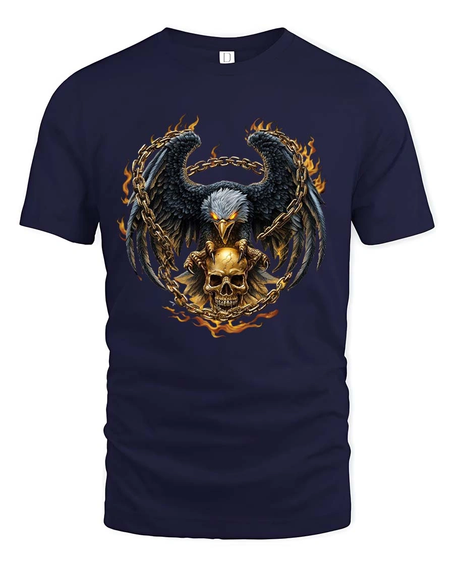 Fierce Eagle Skull Chain Flame Gothic Biker Graphic T Shirt - navy t-shirt on white background