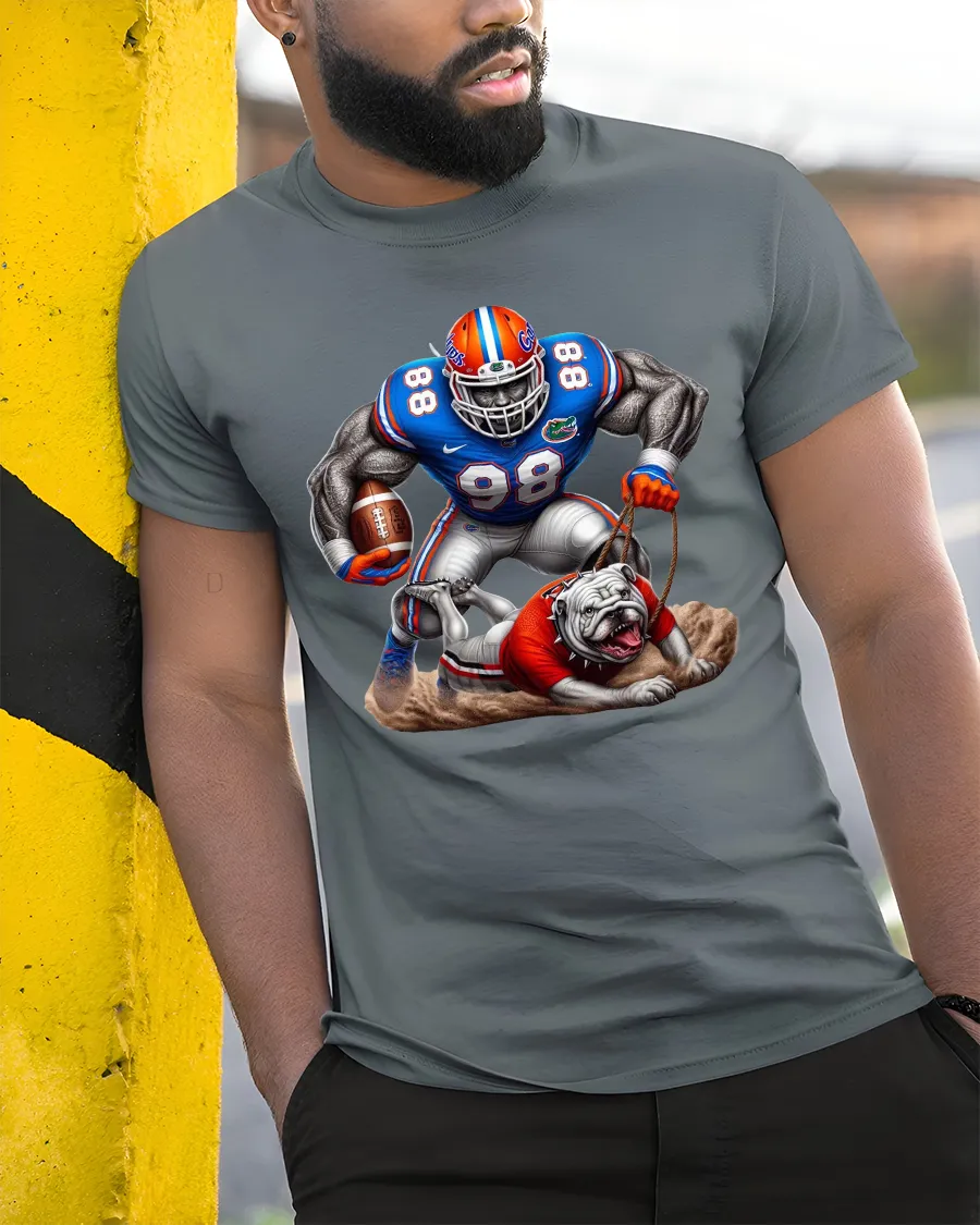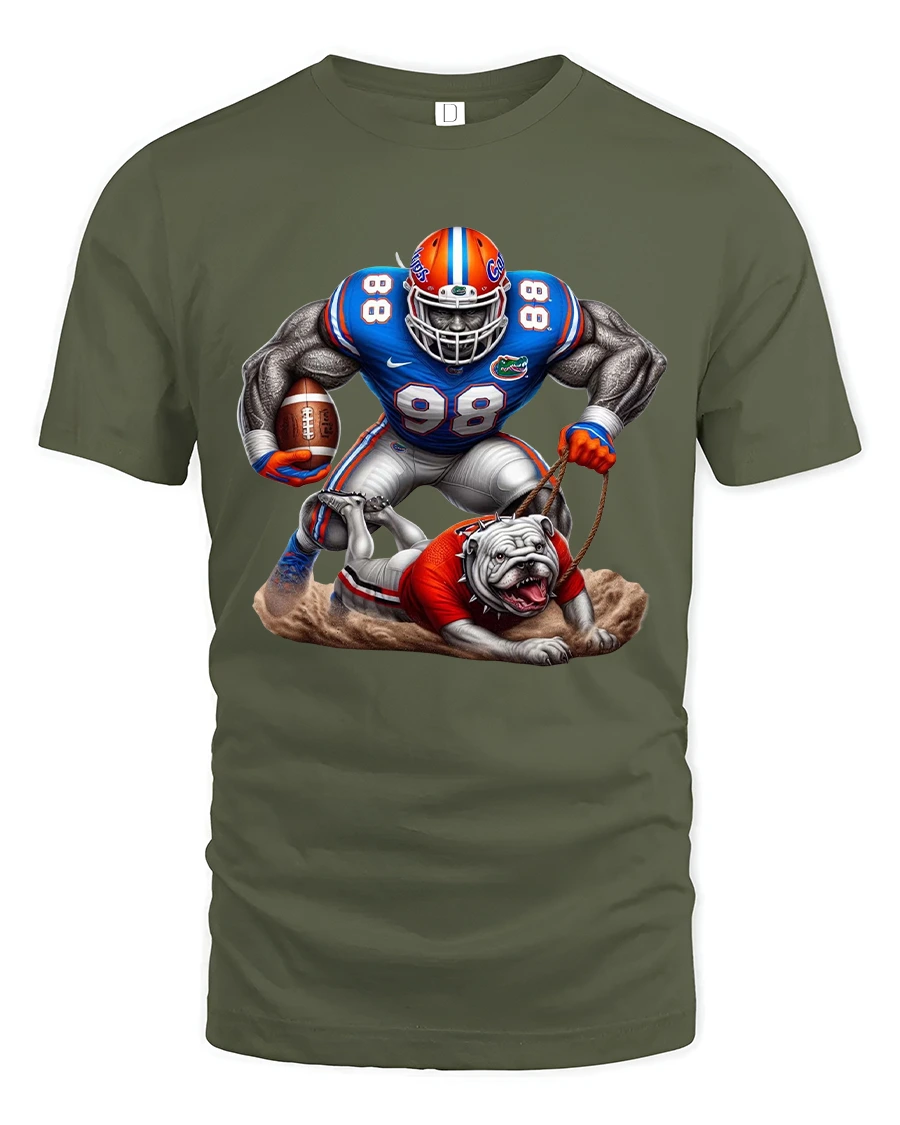 Fierce Football Power Bulldog Action Art Graphic T Shirt symbolizes determination toughness and unbreakable spirit.