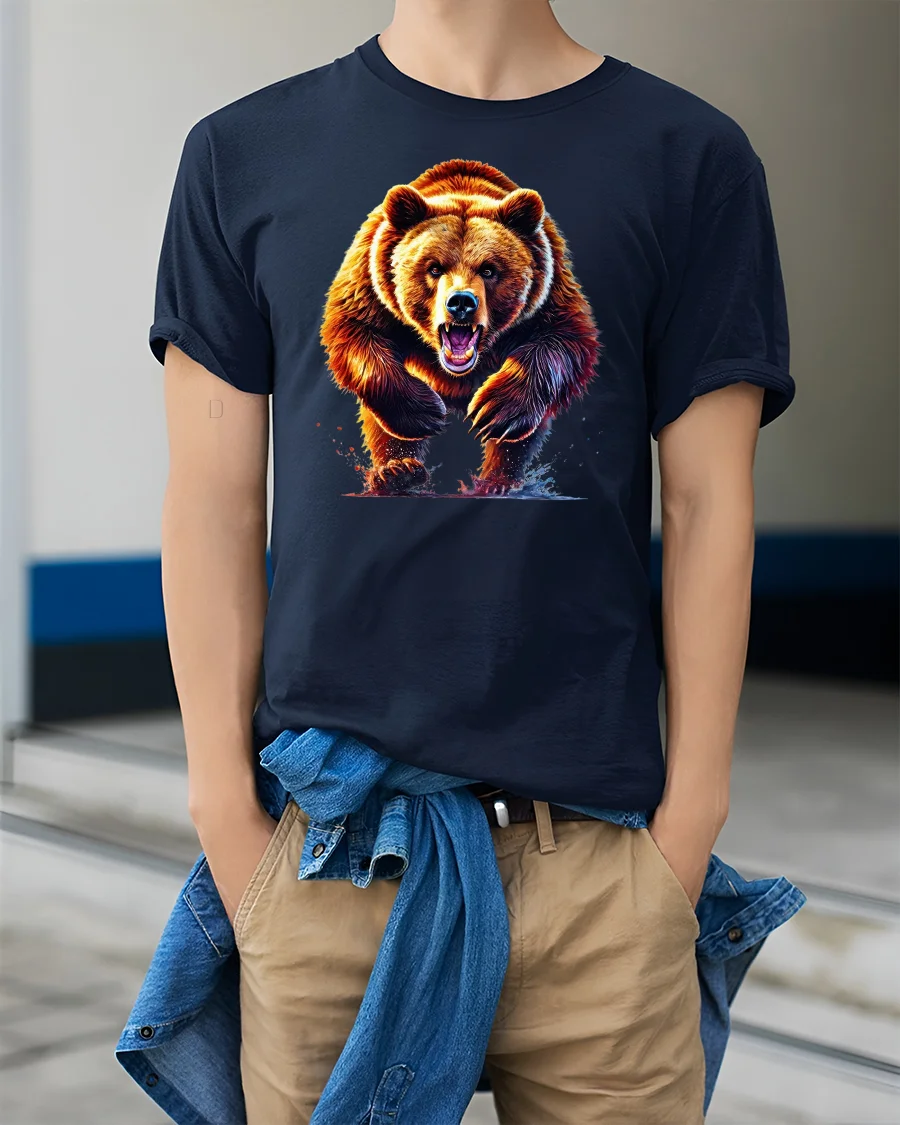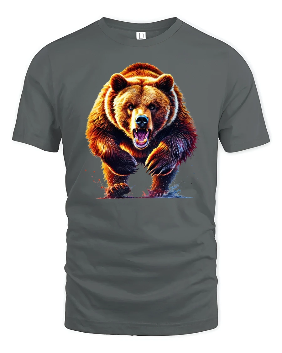 Show your wild side with the Fierce Grizzly Bear Graphic Tee for Outdoor Lovers. Featuring a bold, roaring bear charging through water, this design captures the raw power and energy of the wilderness. With its vibrant colors and intense details, this tee is perfect for those who love wildlife, adventure, and standout graphic art.